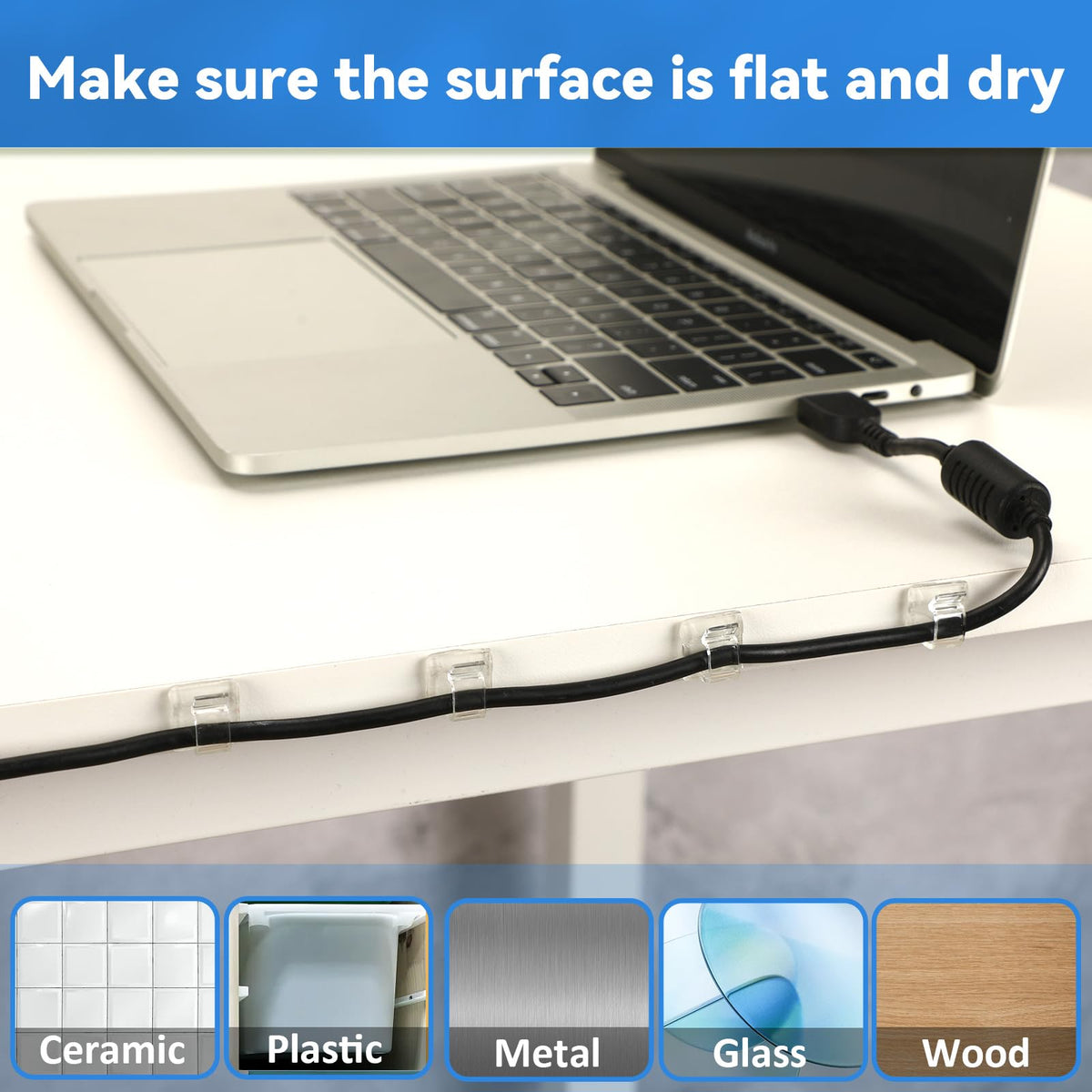 Q: What types of surfaces can these cable clips be used on?A: The PETKNOWS adhesive cable clips can be used on a variety of smooth surfaces including metal, plastic, wood, glass, and ceramics. This versatility makes them ideal for home, office, and outdoor use.