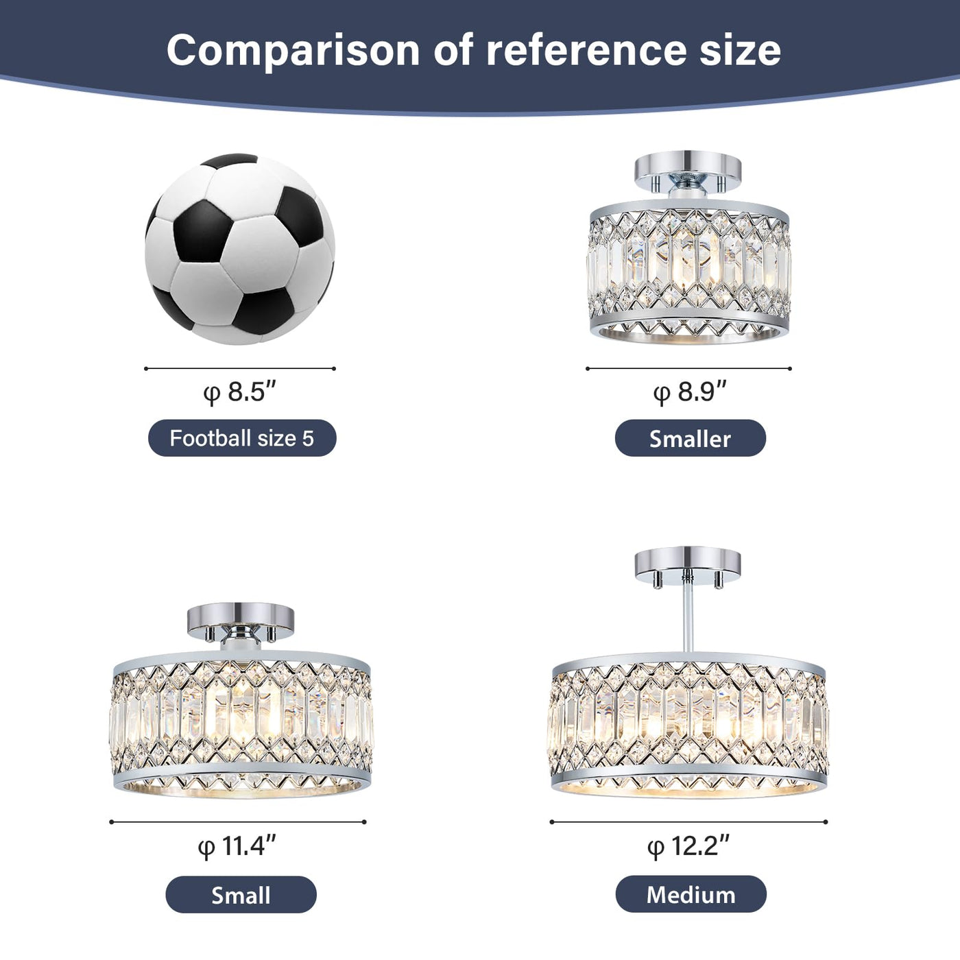 Crafted from enhanced K9 crystals and sturdy metal, the Pevfah crystal ceiling light combines elegance with longevity. It is available in two sleek finishes: modern chrome and classic black. This versatile light fixture comes in three sizes—9-inch, 11.4-inch, and 12.2-inch—making it easy to find the perfect fit for any area in your home.