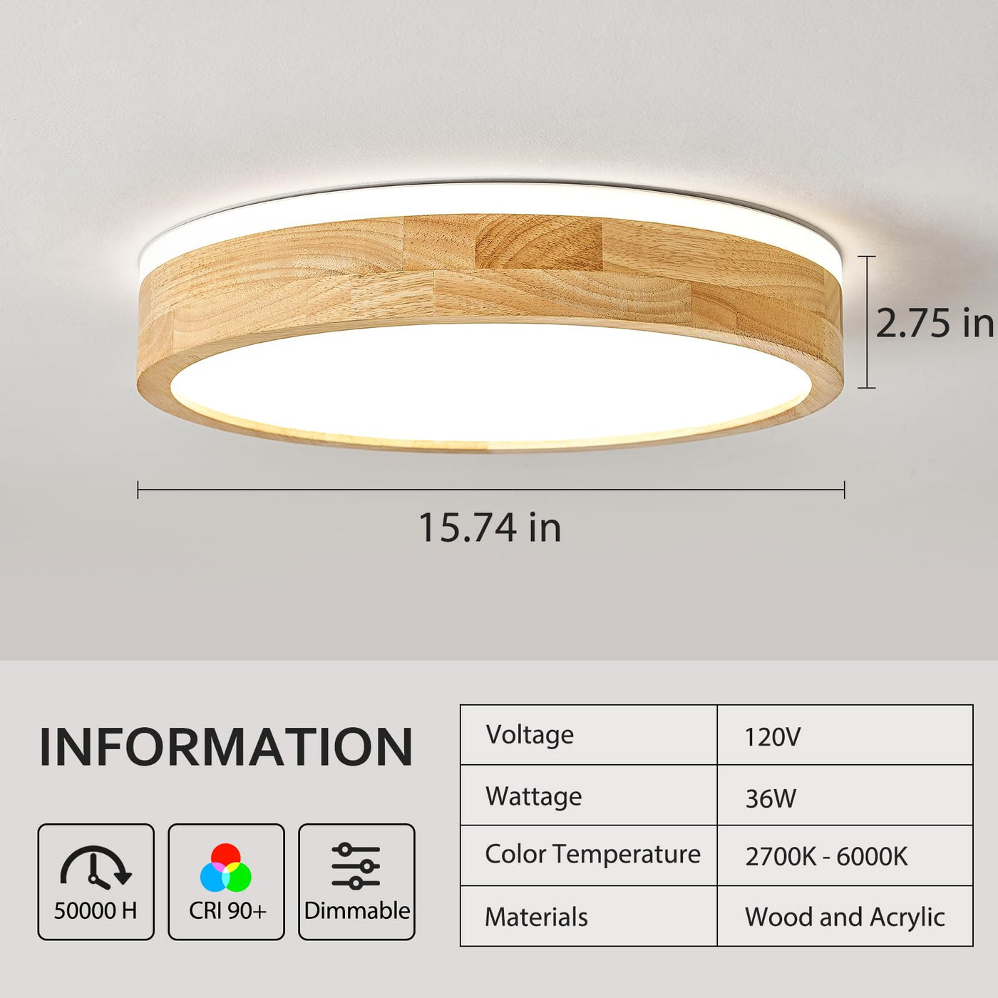 Pevfah Modern Dimmable Wood Flush Mount Ceiling Light 2700K-6000K 5Cct Round Close To Ceiling Lighting Fixtures Minimalist Led Ceiling Lamp For Bedroom Kitchen Hallway Living Room-15.74In