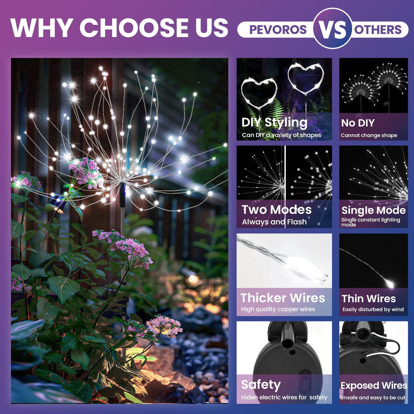 Q: Can these solar lights be used for special occasions or events?A: Yes, the PEVOROS solar garden lights create a mesmerizing fireworks effect, making them perfect for enhancing the atmosphere at parties, festivals, and holidays.