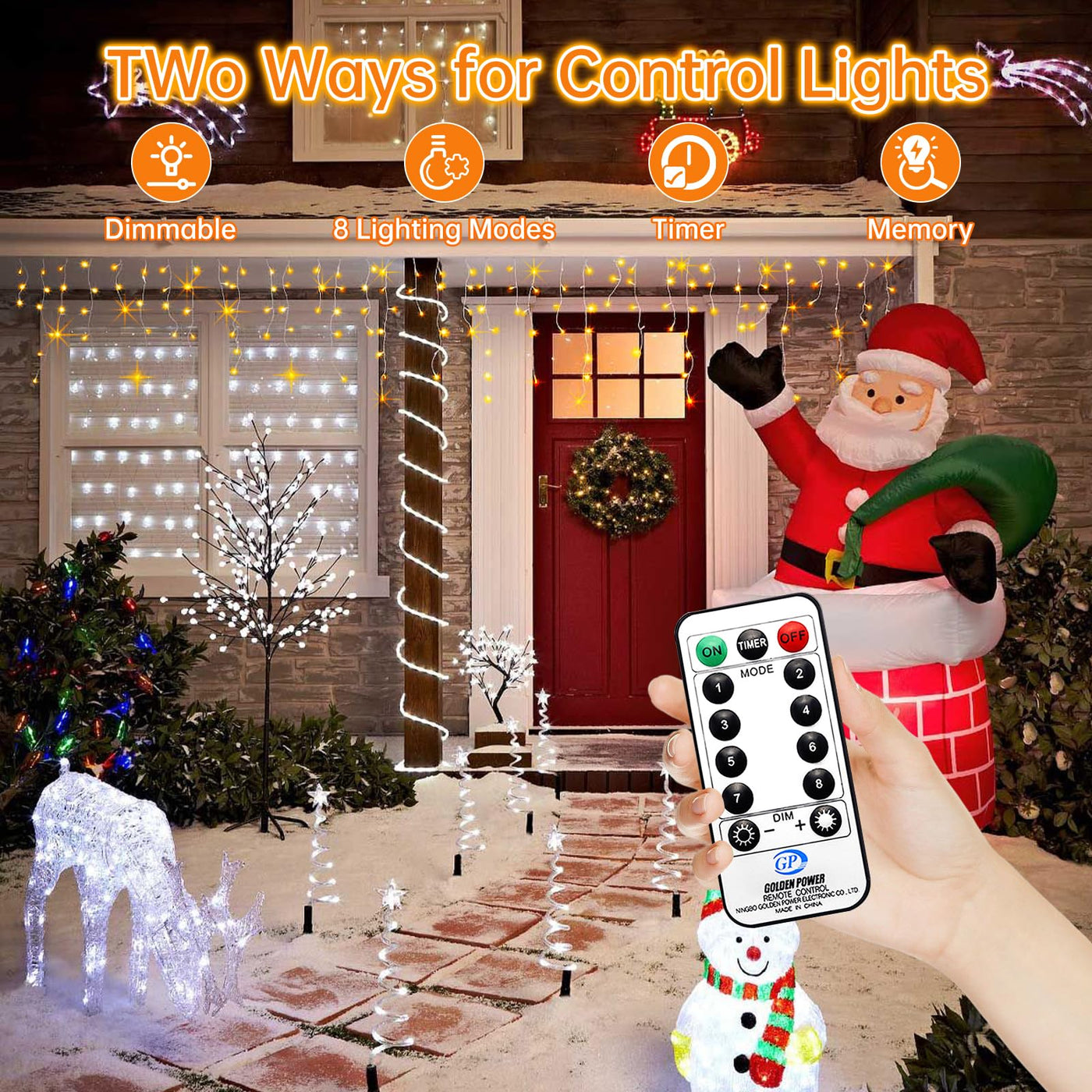 Pgup Christmas Decoration Outdoor 124Ft 1200 Led Warm White Christmas Lights, 8 Modes Timer Curtain Fairy Light With 240 Drops P