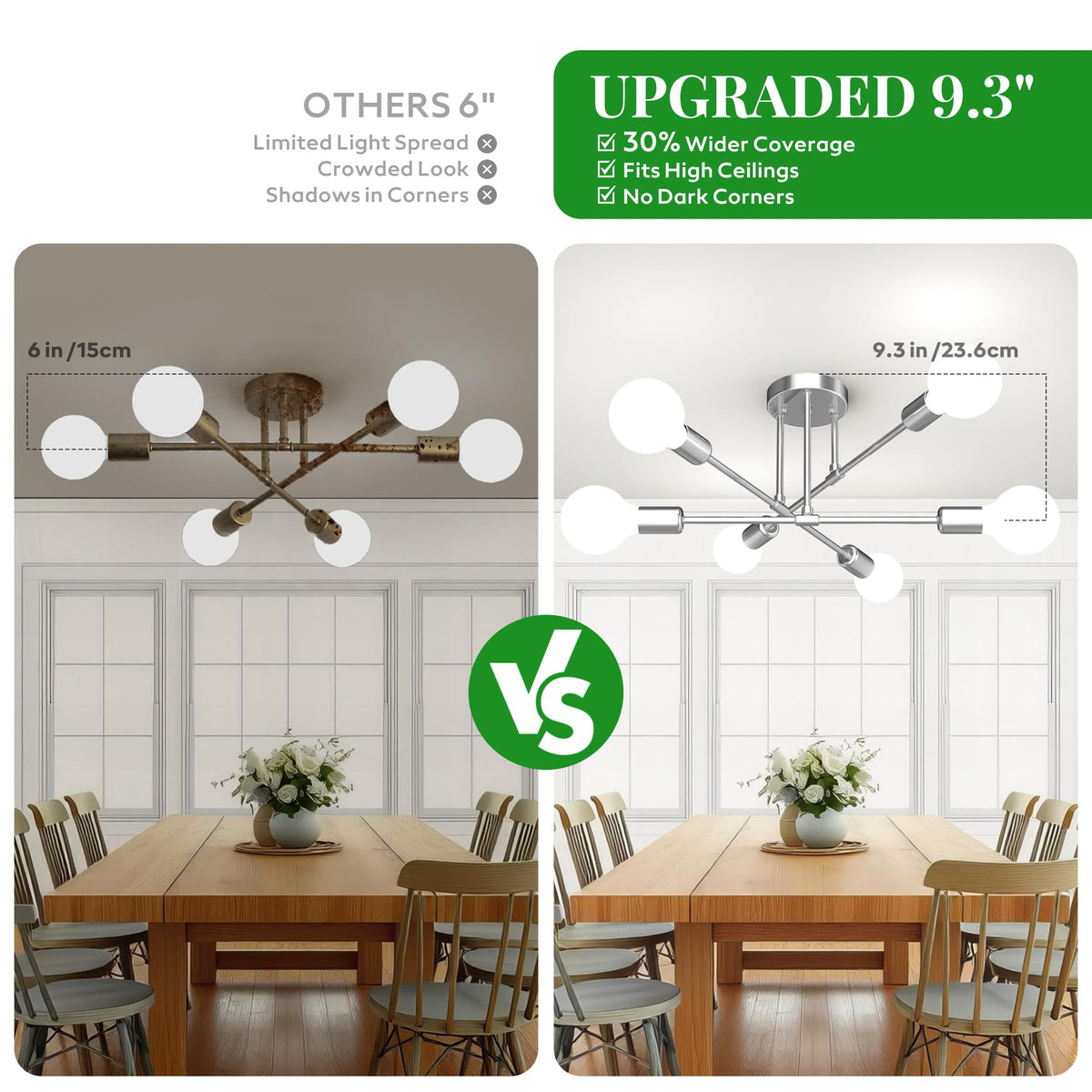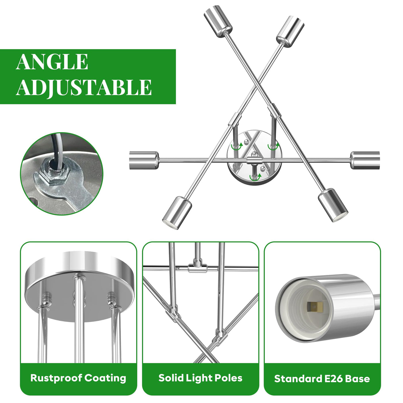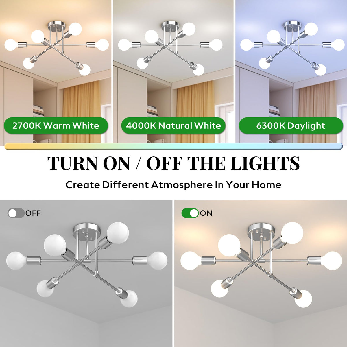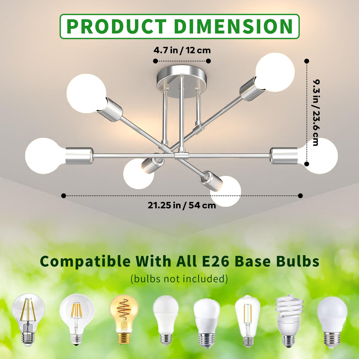 ?Modern Sputnik Design For Statement Lighting?This 22-Inch Sputnik Chandelier Features A Clean, Modern Silhouette Inspired By Mid-Century Style. Its Semi Flush Mount Structure Makes It Ideal For Standard Ceilings And Adds An Architectural Touch To Your Bedroom, Dining Room, Hallway, Or Living Space.