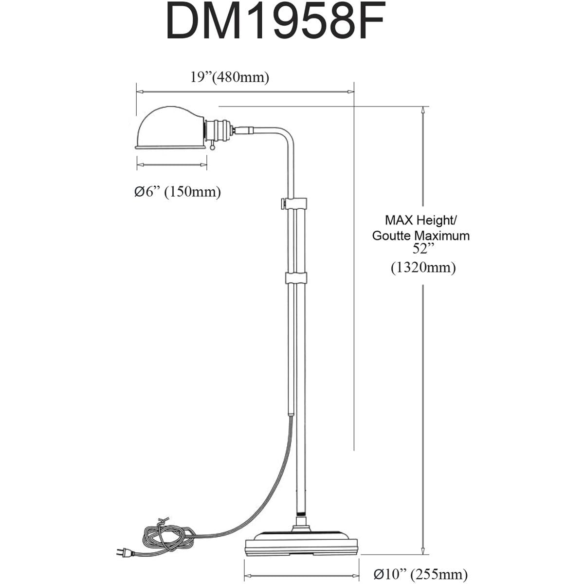 Product DescriptionTransitional One Light Floor Lamp from Floor Lamp collection in Oil Brushed Bronze finish , 10.00 inches,From the ManufacturerDainolite offers a large line of beautiful, contemporary lighting that is sure to make an impression in any room. Their DM1958F-OBB fixture is a piece of elegant originality, providing radiant lighting to your home or office.