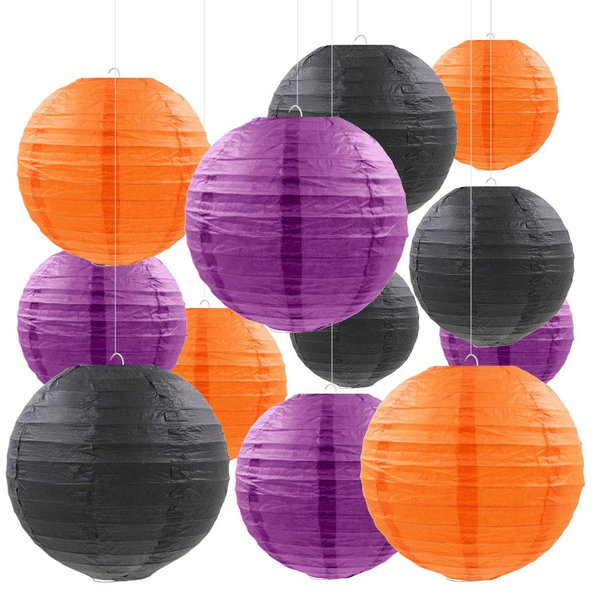 Pheila 12 Pcs Halloween Paper Lanterns - Orange, Black, Purple Party Decorations For Indoor/Outdoor