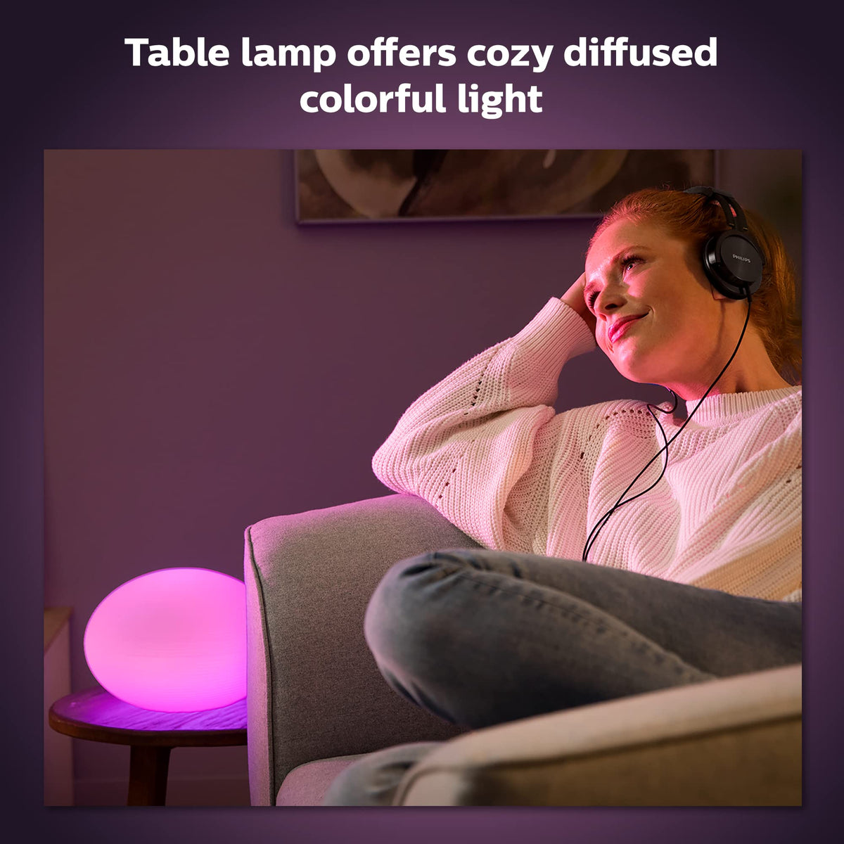 Illuminate your space with the Philips Flourish Table Lamp, a versatile and stylish lighting solution designed to enhance any occasion. Whether you need warm light to unwind, cool light for focus, or colorful light to set the mood, this lamp delivers powerful, diffused illumination that transforms your environment. Easily control your lighting via Bluetooth or expand your setup with a Hue Bridge for a comprehensive smart lighting experience across your home.