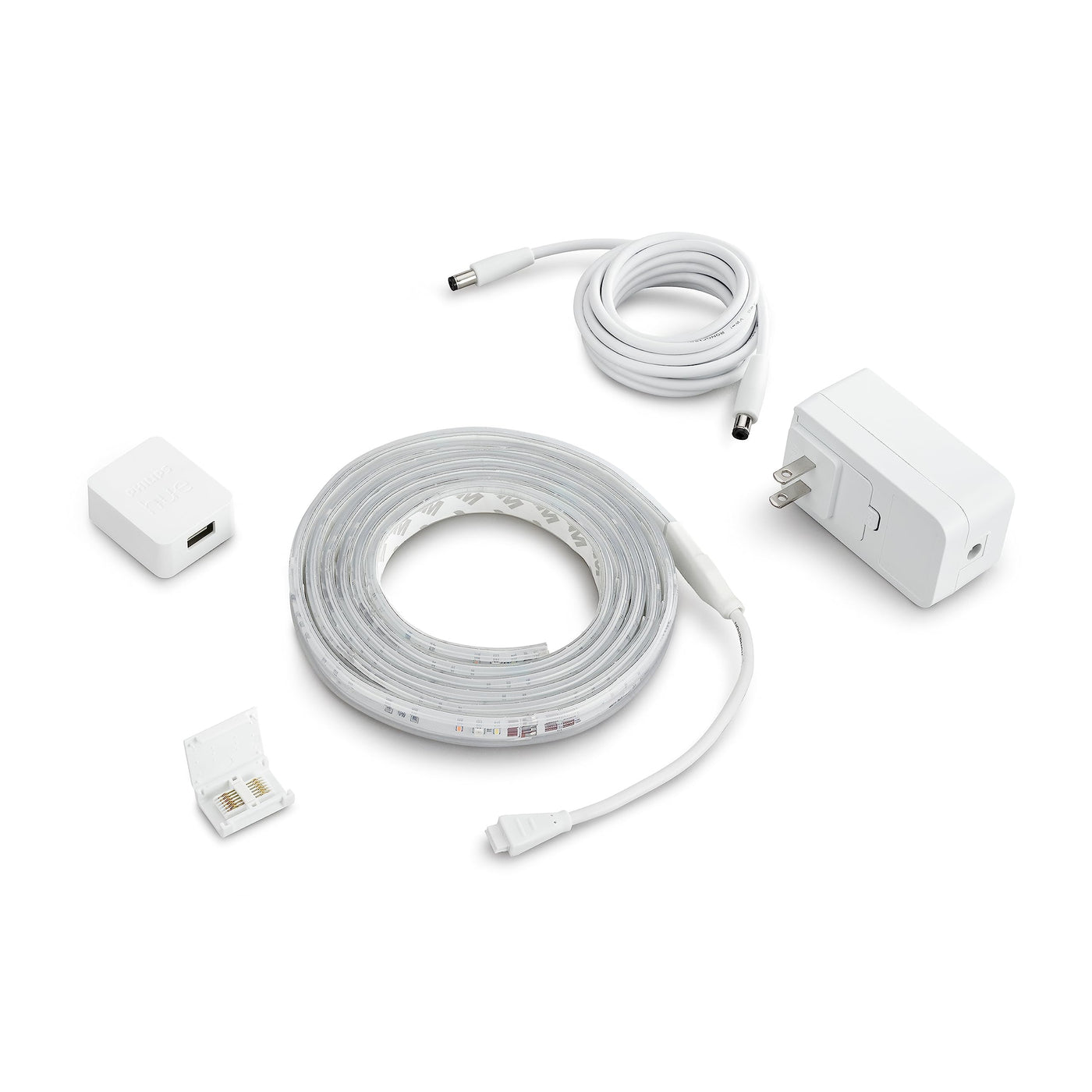 Use this Hue gradient ambiance base kit with your Hue gradient ambiance light strip extension (sold separately) to extend your light strip. Use multiple extensions to extend up to 33 feet. With this color changing light strip you can enjoy a seamless blend of multiple colors of light at the same time in a single LED strip. The colors flow naturally together while casting a diffused rainbow of light to enhance your ambiance and room decor. The light strip has a premium silicone sleeve with a milky white finish and blends in neatly wherever the light strip is placed. The sleeve diffuses the light so that all you see is the beautiful ambiance of light with no harsh reflections. Place your light strips under or above kitchen cabinets, furniture, along a hallway or stairs, or anywhere your imagination takes you. When looking for LED lights for bedrooms, light strips can be placed under a bed to provide the right light for going to sleep or easing into the morning. The flexible design can bend to fit and can be cut or extended. When connected to a base kit you can control up to 10 lights in a room with Bluetooth to instantly set the mood. Add or connect to a Hue Bridge to unlock the full power of Philips Hue smart home lighting, including the ability to control up to 50 lights and accessories, automations, and smart control from anywhere in the world. Pair your light strip with any compatible Amazon Echo or Google Home device for hands-free help in any room, or use Apple HomeKit when paired with a Hue Bridge (sold separately).