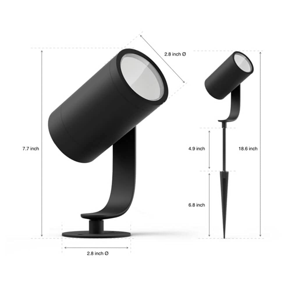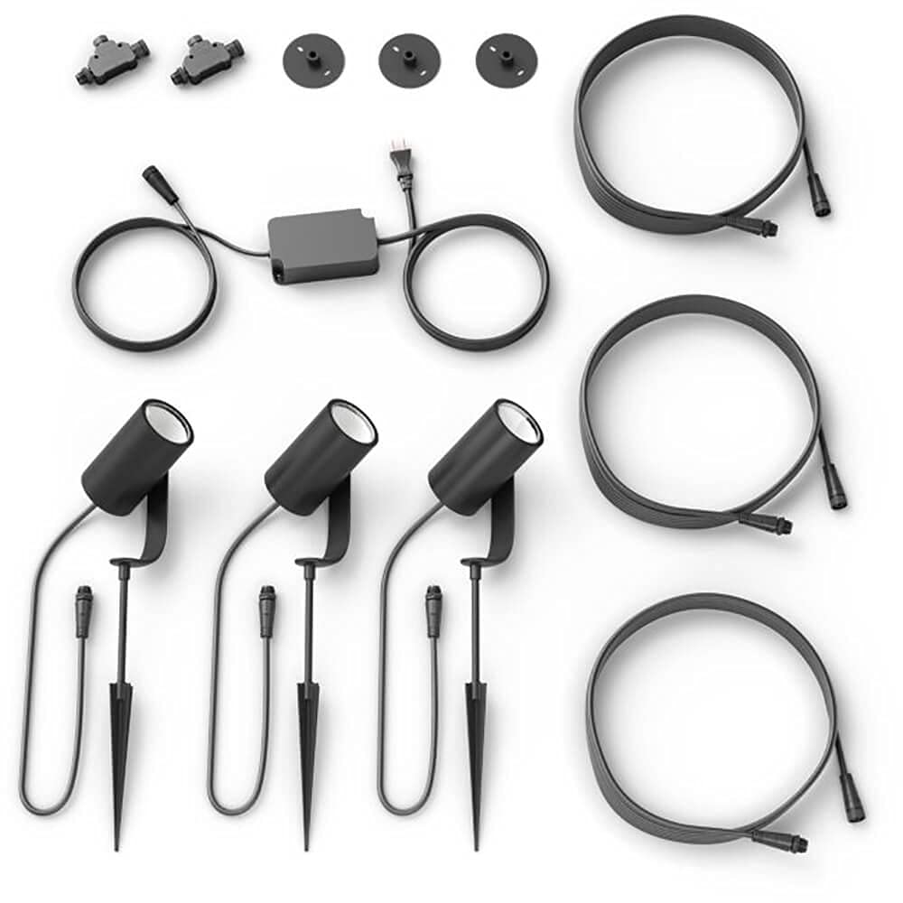 Plug in and light up your outdoors with Philips Hue outdoor lighting. This innovative lighting solution requires a Hue hub (sold separately) to unlock its full potential. With the ability to choose from 16 million colors, you can enhance the beauty of your yard or create any ambiance you desire. This dusk to dawn light bulb base kit includes three light points, a power supply, and all necessary cables to get you started. The Lily landscape spots are fully weather-proof, making them perfect for outdoor use.