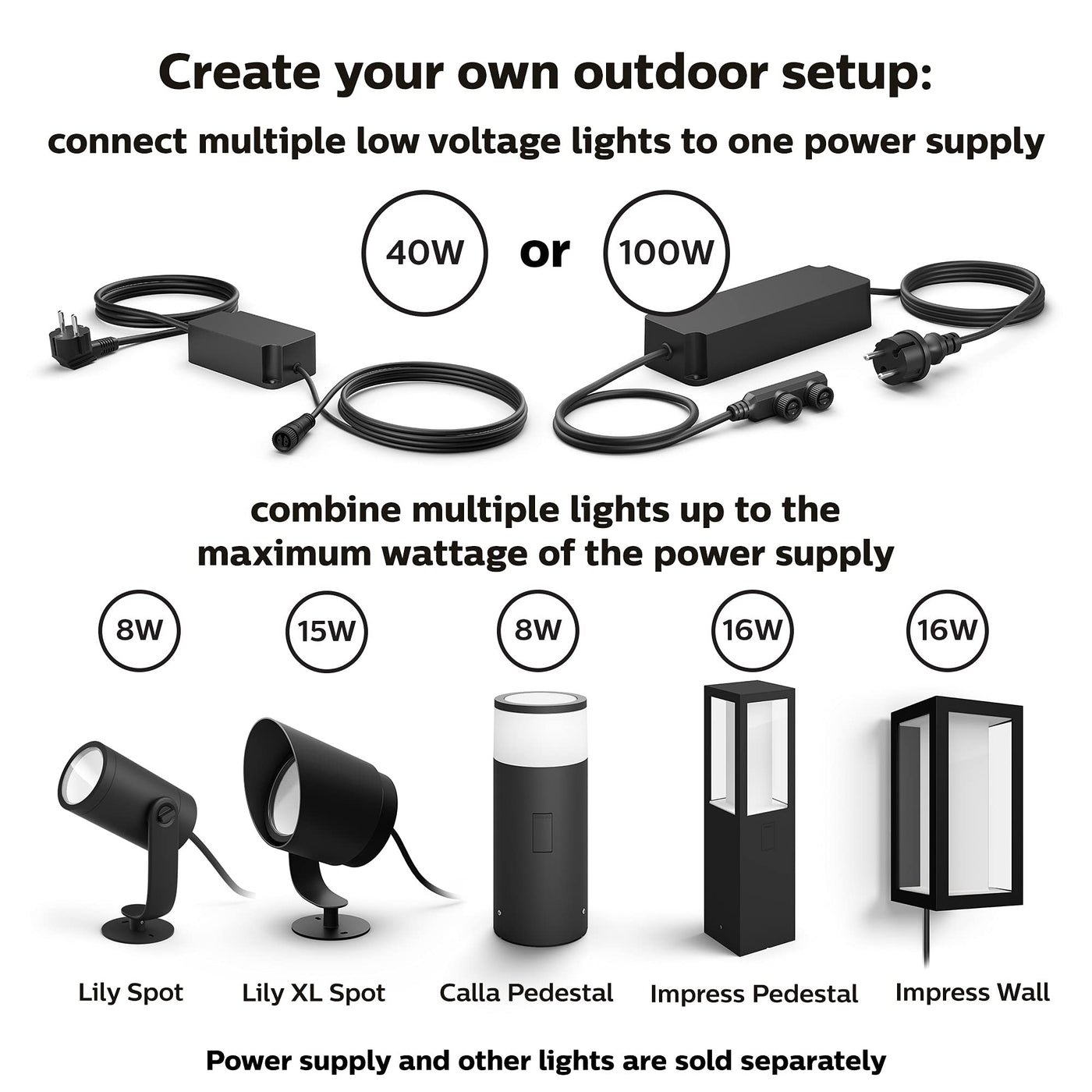 DescriptionBrighten up dark paths create highlights in your landscaping, or create a unique ambiance on the patio. You can do it yourself, using Hue spots or bollards. The products are based on low voltage, safe to use and easy to install. No more complexity to get lighting outdoors: go create and extend as you like.