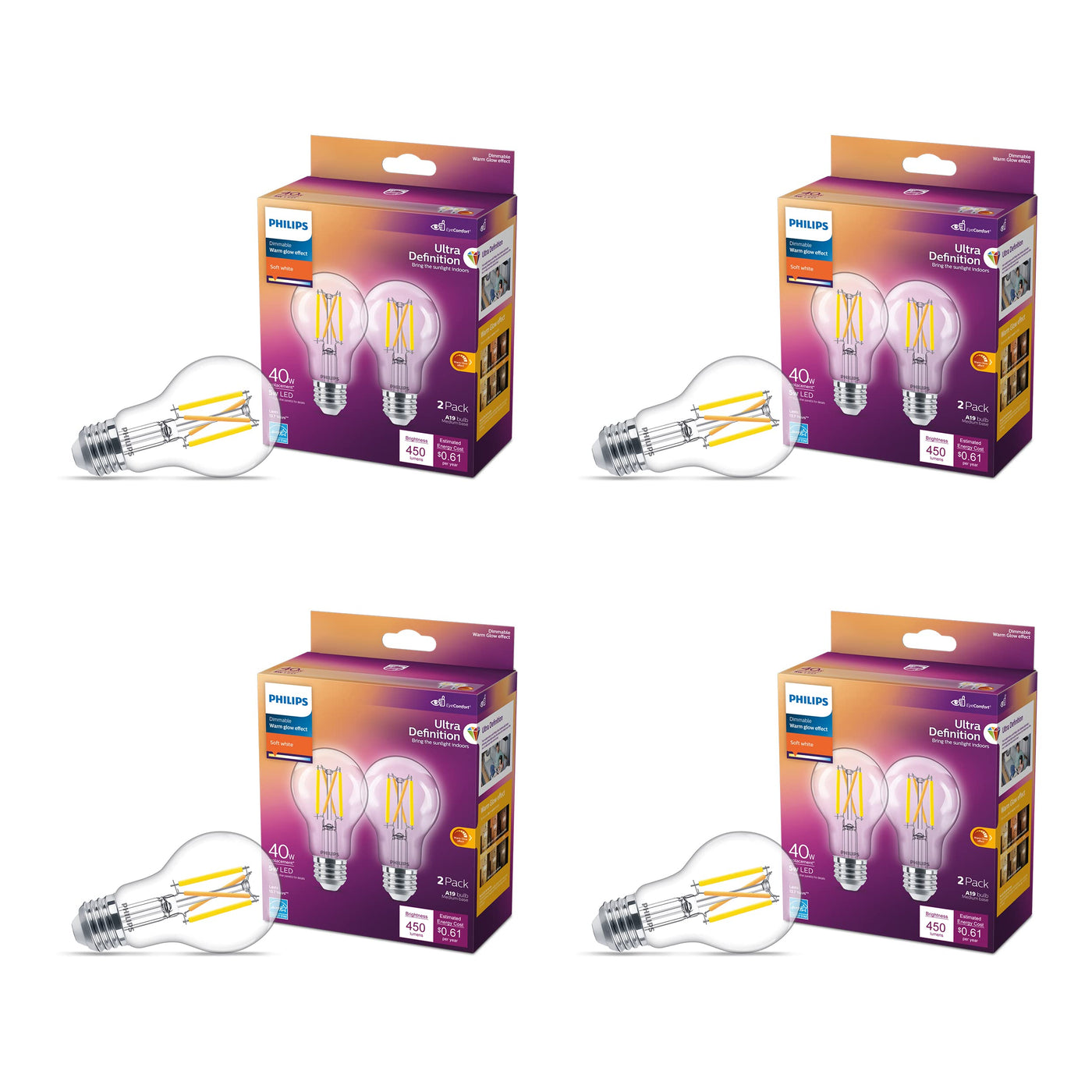 Philips LED A19 glass Light Bulb, Eyecomfort Technology, Dimmable Warm glow Effect, 450 Lumen, Soft White Light (2700K), 5W=40W, E26 Base