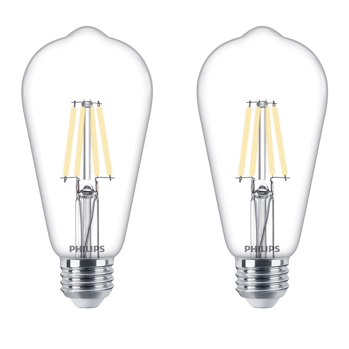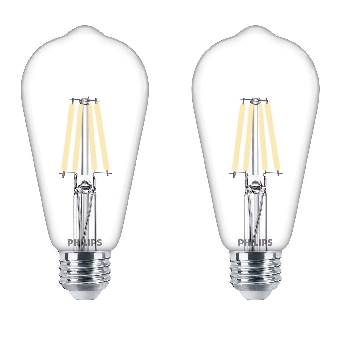 This Philips Vintage LED 40W equivalent ST19 Clear Straight Filament bulb is designed to be seen. Create a cozy ambiance with the soft white tones of this nostalgia-inspired dimmable LED bulb. It is a perfect fit for a range of decorative applications and styles. Vintage LED bulbs meet Philips EyeComfort criteria. Care for your eyes with quality comfortable light. Only Philips offers EyeComfort bulbs that meet strict criteria for visual comfort with no visible flicker or glare. This clear glass vintage-style bulb has a medium (E26) base.