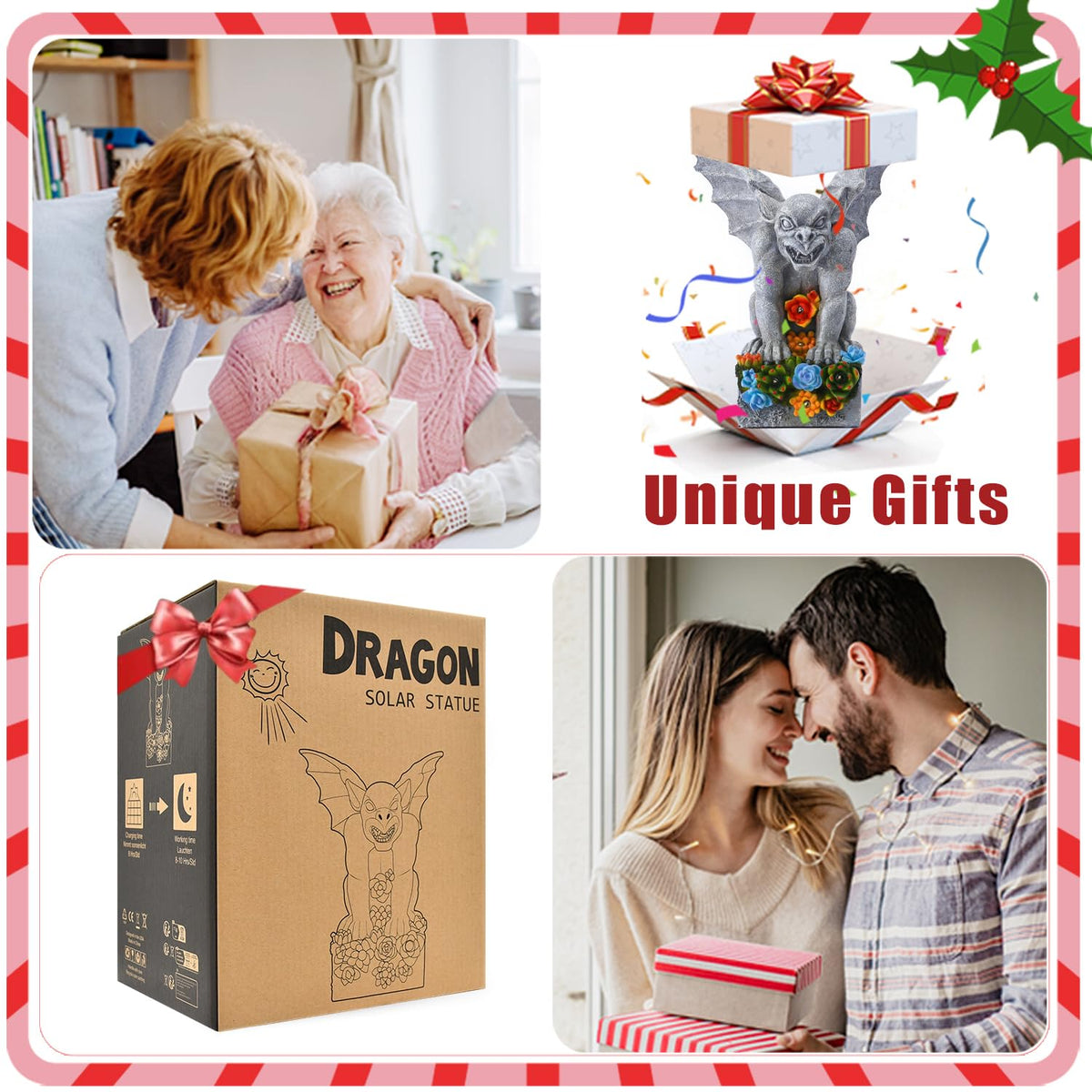 Philodwell Solar Gothic Gargoyle Garden Statues: Outdoor Sculptures With Succulent Lights Decor For Patio Lawn Yard Art - Gifts