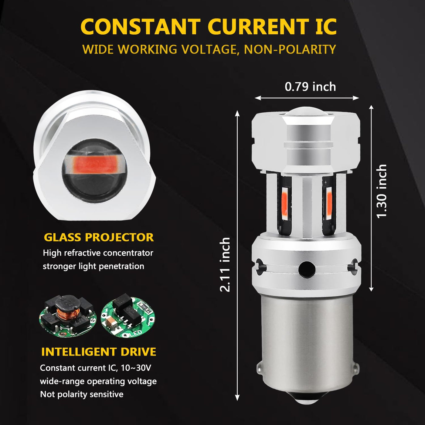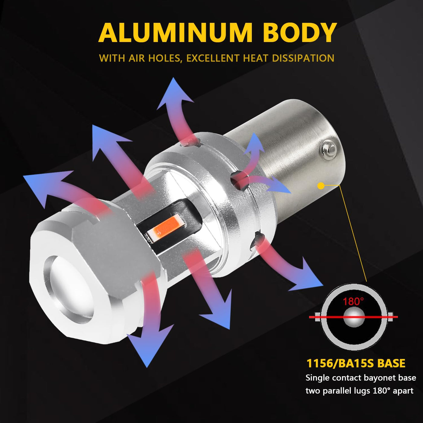 These high-powered LED bulbs operate on a wide voltage range of 10V to 30V, making them suitable for both 12V and 24V vehicles. Each bulb features four high illumination CSP 1860 LED chips, ensuring a strong light output with 360-degree visibility. The durable aluminum body not only contributes to a sleek design but also aids in effective heat dissipation, enhancing the longevity of the product. With an IP67 waterproof rating, these bulbs are built to withstand harsh weather conditions.