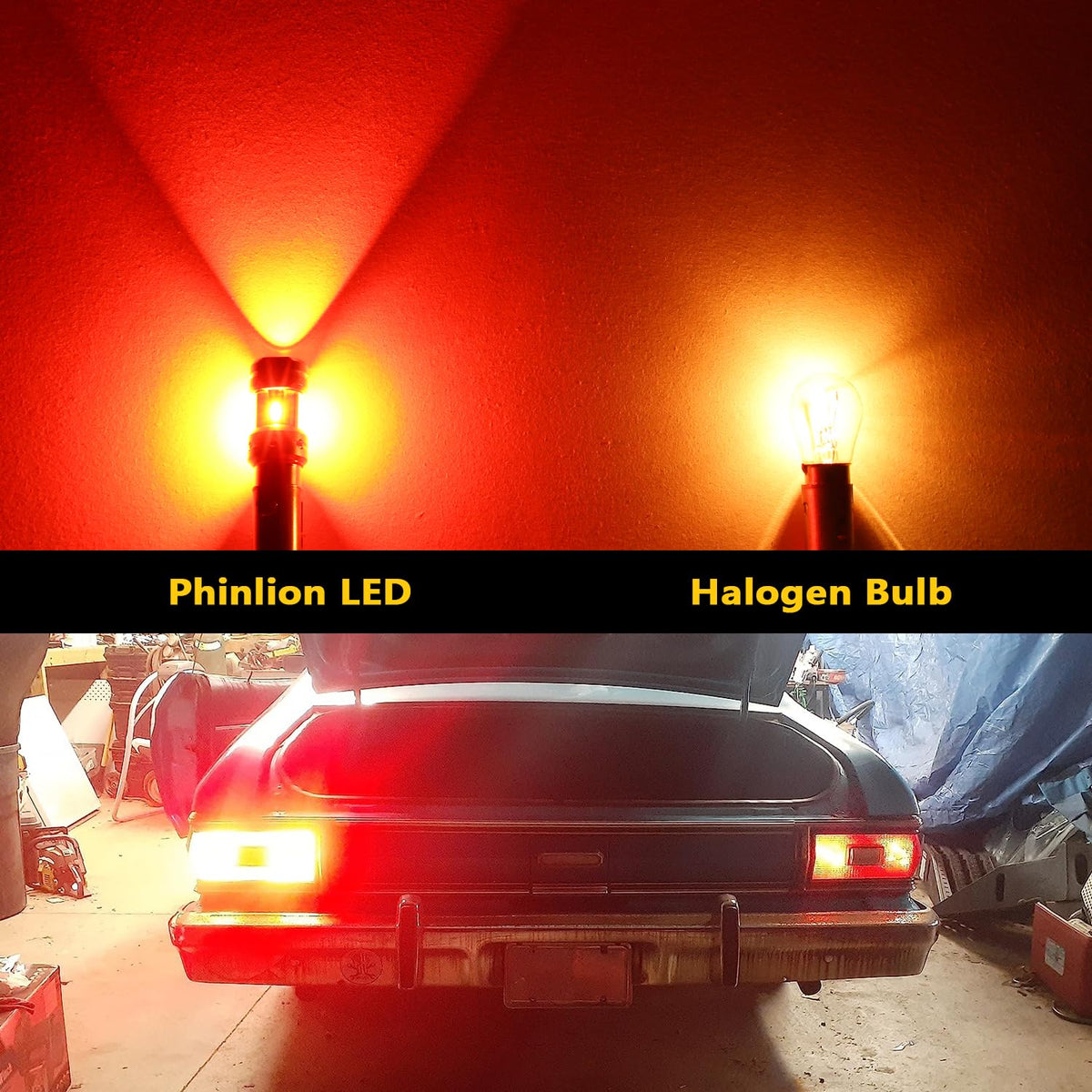 The PHINLION LED bulbs are designed to enhance vehicle lighting for various applications, including brake lights, turn signals, and side marker lights. With a robust construction and advanced LED technology, these bulbs provide reliable performance in a variety of driving conditions.