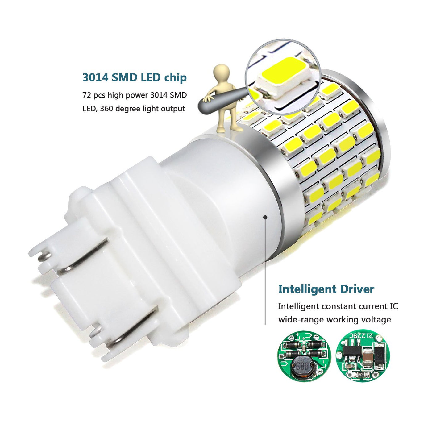 Phinlion 3157 Led Light Bulb Super Bright 3014 72-Smd High Power 3156 3057 3457 4057 4157 3157 Led Bulbs For Backup Reverse Brake Tail Turn Signal Lights, 6000K Xenon White