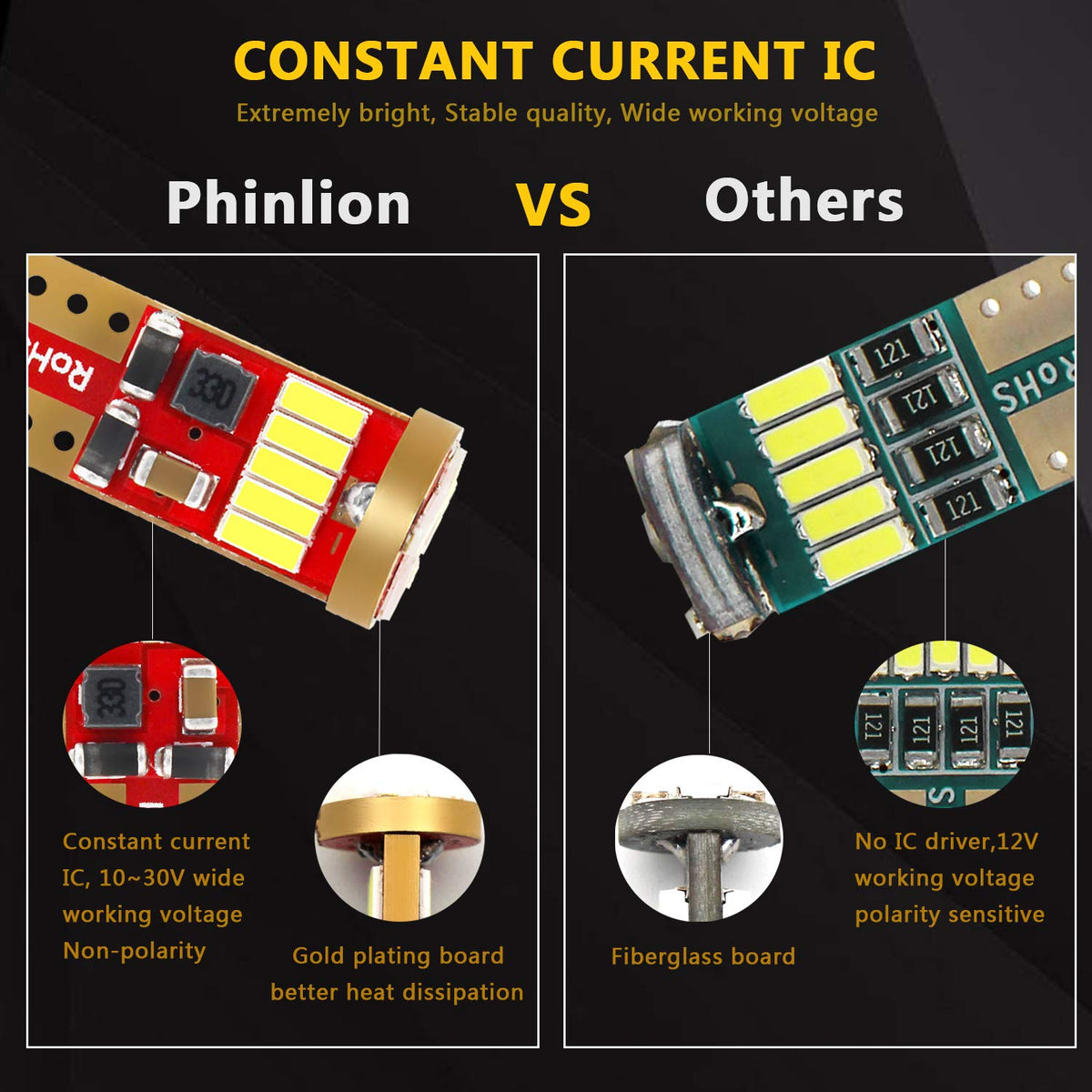 Q: Do these bulbs produce any error messages in vehicles equipped with CANBUS systems?A: The PHINLION LED bulbs are designed with a built-in CANBUS system, which means they are error-free for most vehicles. However, it’s important to note that compatibility may vary for certain newer European vehicles, so checking your vehicle's specifications is advisable.