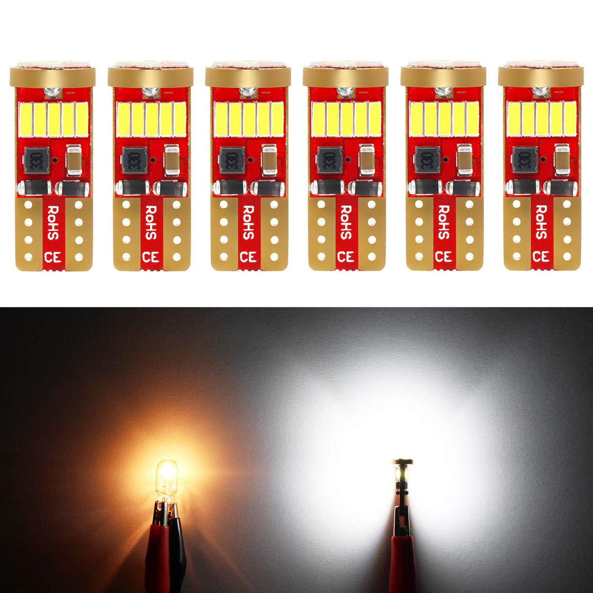 Phinlion 500 Lumens 194 Led Bulbs 6000K White Super Bright Miniature 168 2825 W5W T10 Wedge Led Replacement For Car Interior Dome Map Courtesy Truck Glove Box License Plate Lights, Pack Of 6