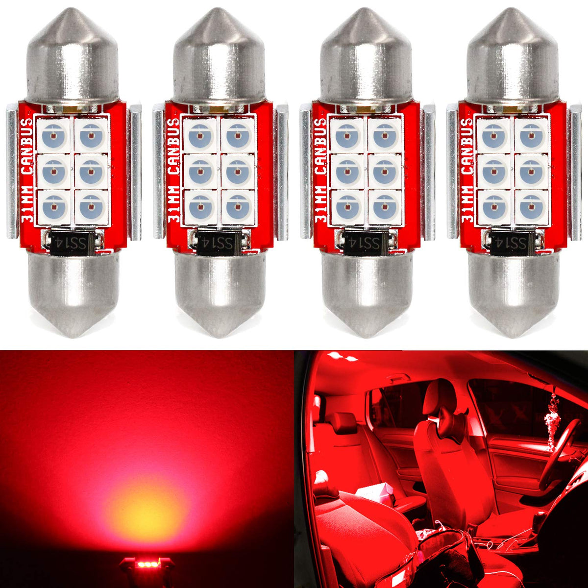 Phinlion Super Bright De3021 Led Red Bulb 3030 6-Smd Festoon 1.25 '' 31Mm De3175 De3022 Miniature Led Bulbs For Car Interior Doo