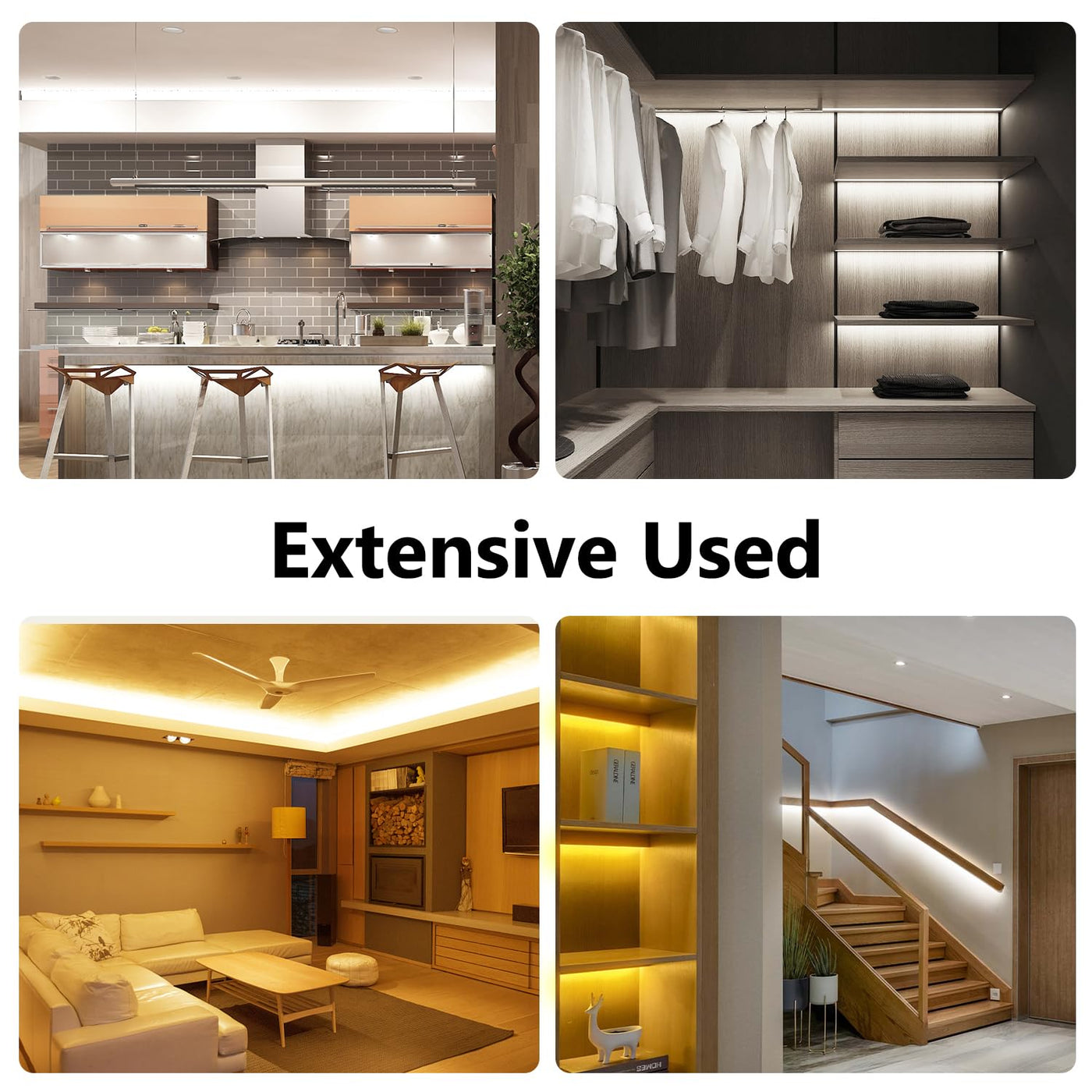 Q: What are some common uses for PHOPOLLO COB LED Strip Lights?A: These versatile LED strip lights are ideal for various applications, including lighting for vanity mirrors, stairs, bedrooms, cabinets, kitchen counters, living rooms, and display cases, providing flexible and beautiful lighting solutions.