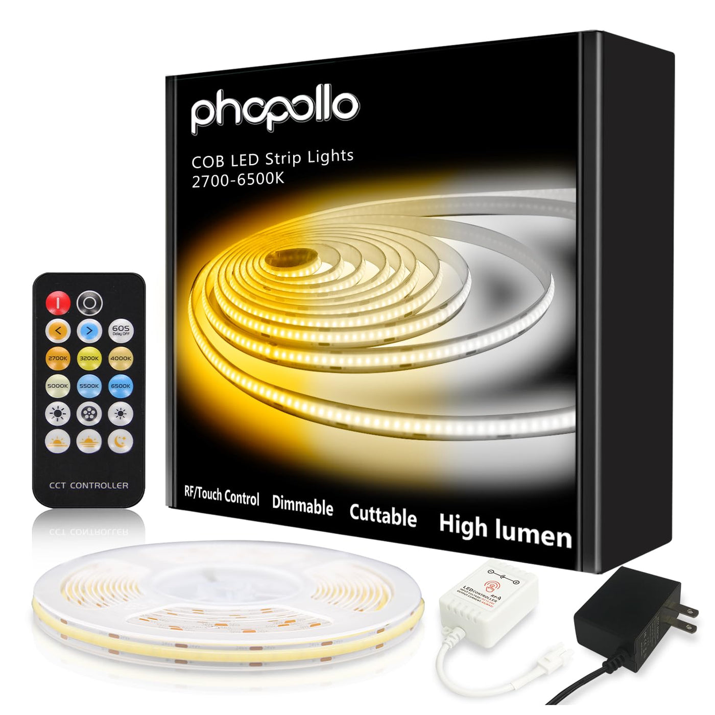 Phopollo Cob Led Strip Lights, 608 Leds/M High Density Flexible 24V Led Lights With Remote & Touch Control, Dimmable 2700K-6500K