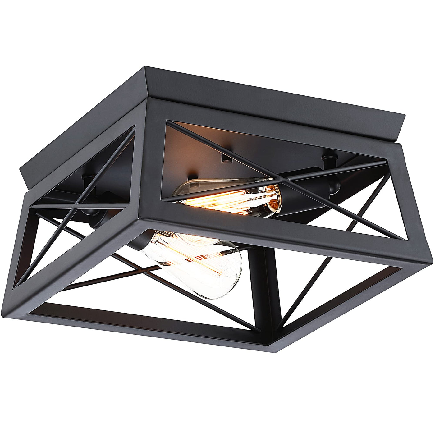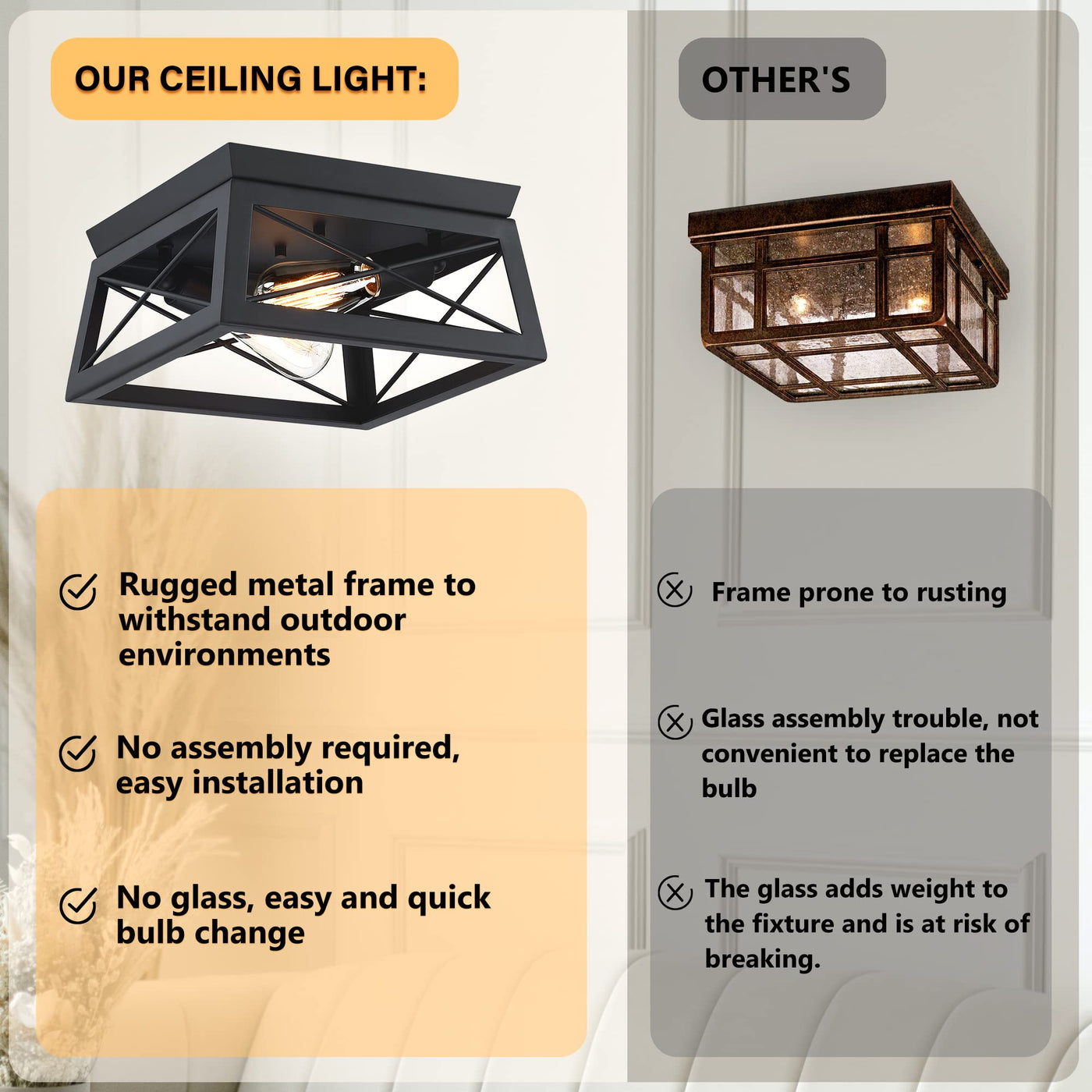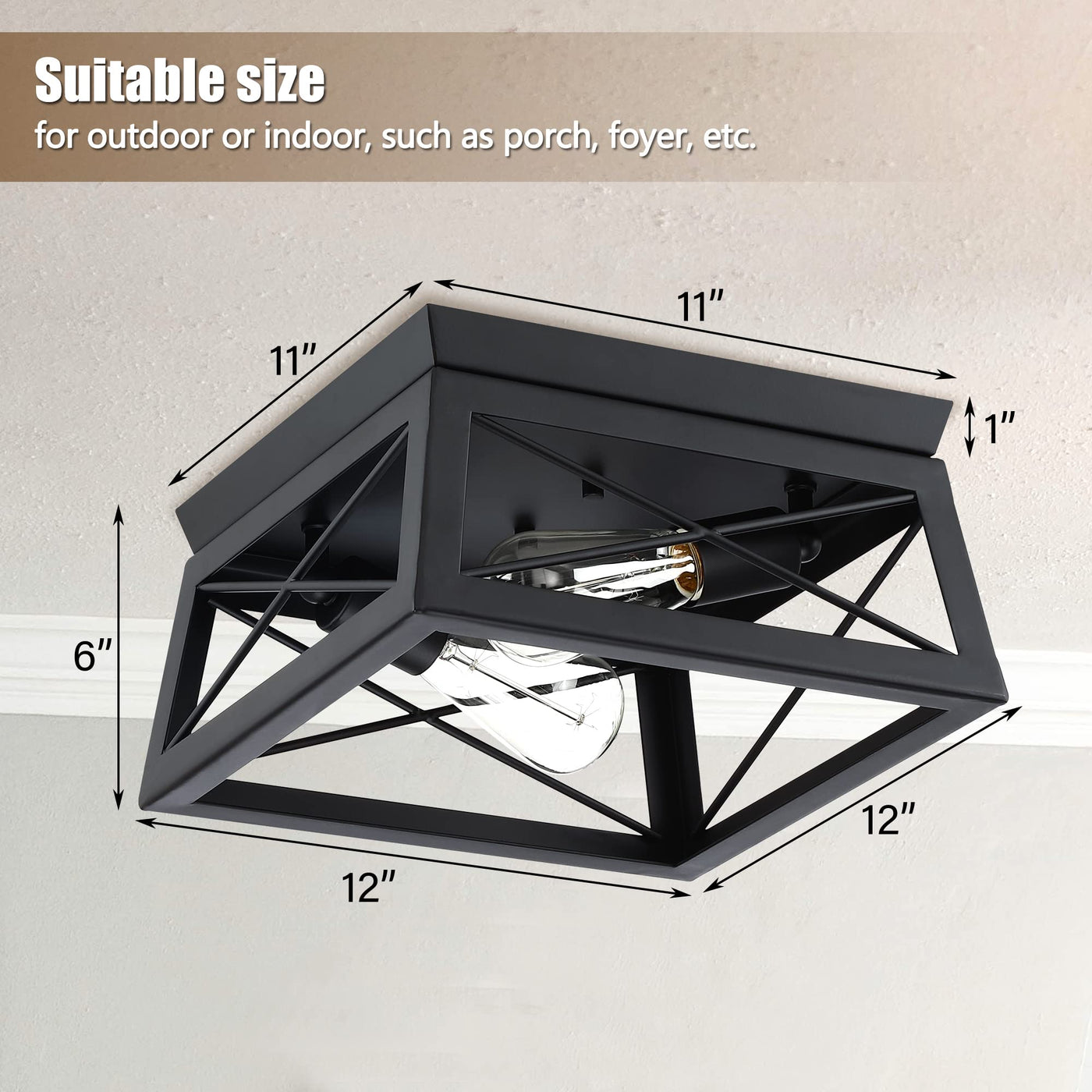 Flush Mount Ceiling Light Fixture, 2-Light Black Porch Ceiling Lights, Indoor or Outdoor, Modern Industrial Square light for Porch living Room, Kitchen, Hallway, Farmhouse Kitchen , Rustic Dining Room