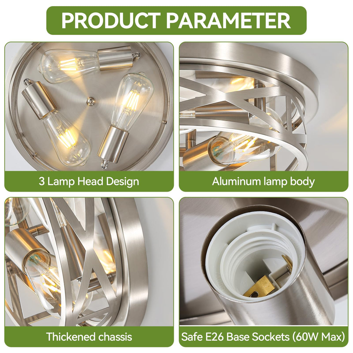 Piano7797 13 Inch Brushed Nickel Flush Mount Ceiling Light Fixtures,3-Light Modern Hallway Light Fixtures Ceiling, Brushed Nicke