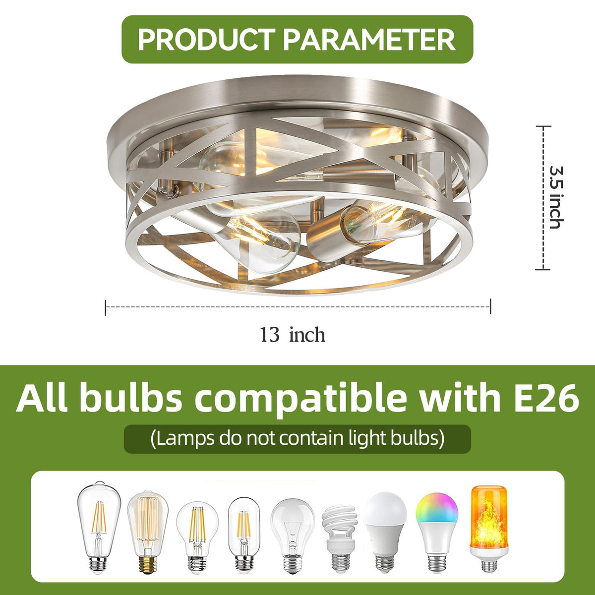 This ceiling light fixture is constructed from well-made metal, ensuring durability and a long lifespan. The open design allows the exposed bulbs to shine brightly, providing ample light without the hassle of glass cleaning. It is designed to accommodate 3 x E26 base bulbs (maximum 60W), making it compatible with LED, incandescent, or CFL bulbs. Please note that bulbs are not included. The installation process is straightforward; simply screw in the desired E26 bulbs to complete the setup.