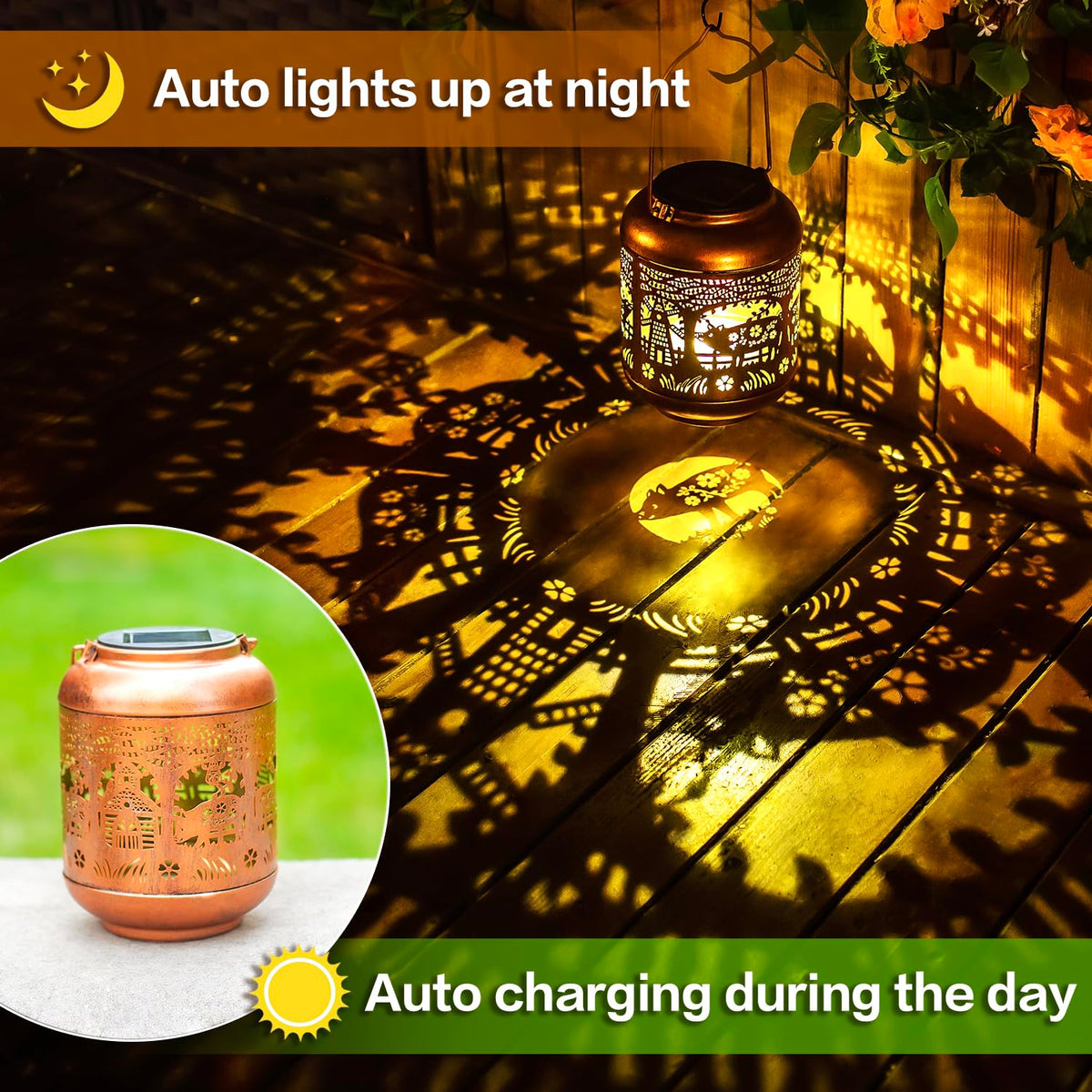 Pig Solar Lanterns Outdoor Waterproof Hanging Solar Lights Pig Gifts For Women Men Mom Metal Decorative Led Outdoor Lanterns For
