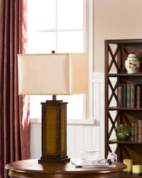 - **Stylish Design**: The rich brown finish and soft fabric shade create a warm, inviting ambiance, making it ideal for living rooms, bedrooms, or offices.