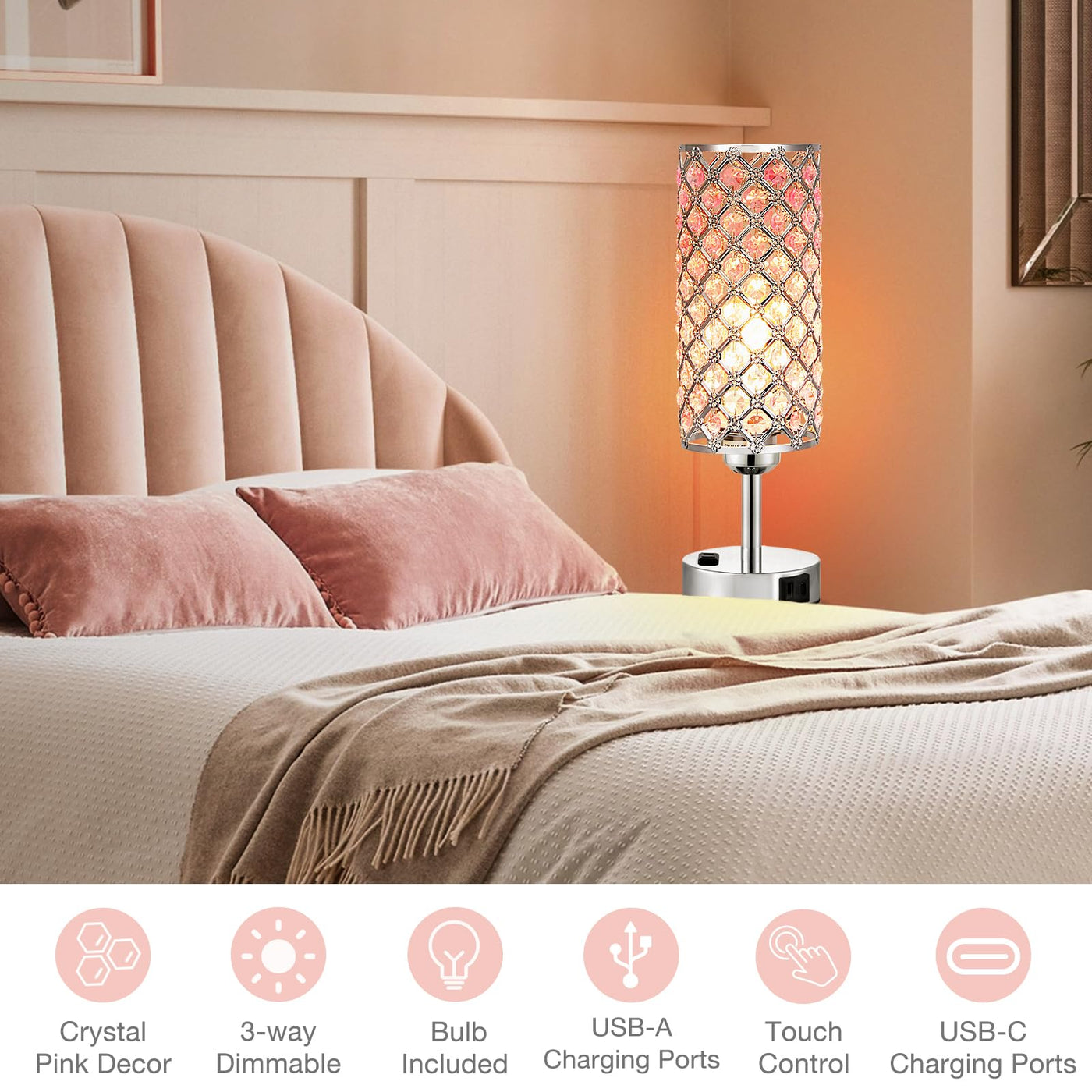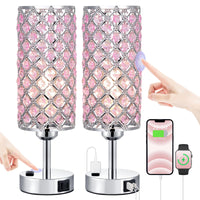 Pink Crystal Lamp Set Of 2, 3 Way Dimmable Touch Lamp For Bedroom With Crystal Shade, Bedside Nightstand Lamps For Living Room B