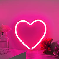 Neon Light Specification: Lights Shaped: Heart Neon Sign Lights Color: Pink Type of Bulb: LED Voltage: 4.5V Product Size: 8.3 inch x 8.7 inch \ 13.4inch x 13 inch Power Supply: 3 AA Batteries (not included) & USB Cable \ USB Cable