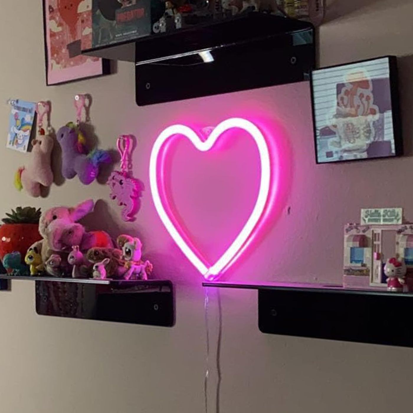 Q: Is the heart neon sign safe for children's rooms?A: Yes, the heart neon sign is safe for children's rooms. It is made from top-quality flexible silicone LED strip lights which ensure low energy consumption and a low voltage of 4.5V, reducing the risk of overheating.