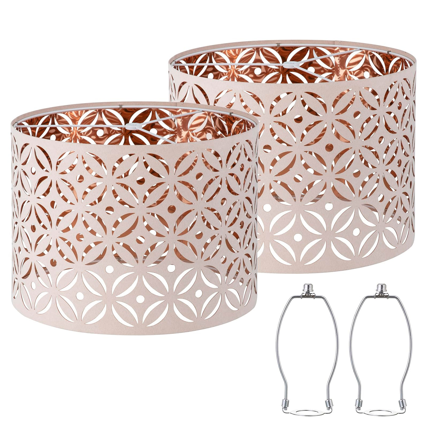 Q: What are the dimensions of the Pink Lamp Shades Set of 2?A: The Pink Lamp Shades Set of 2 has a top diameter of 12.7 inches, a bottom diameter of 12.7 inches, and a height of 10 inches, making them suitable for most table lamps, floor lamps, and wall lamps.