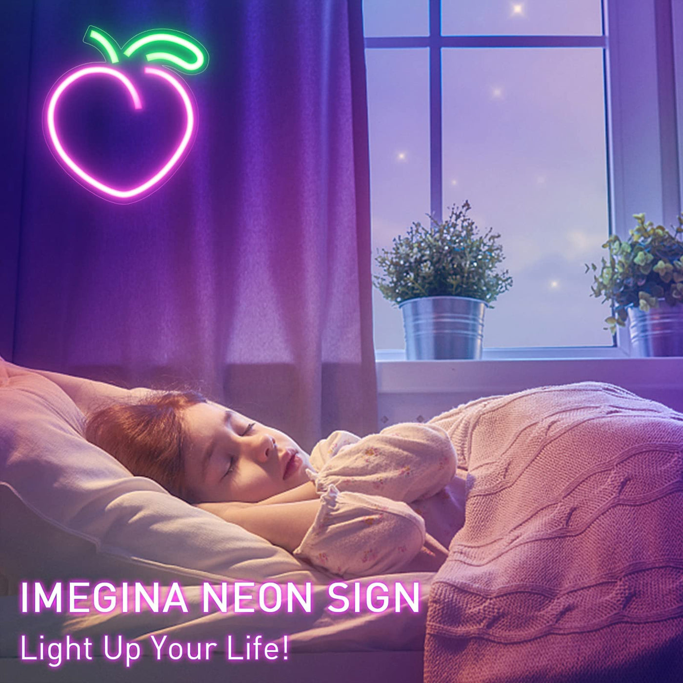 Pink Peach Neon Sign By Imegina - Dimmable Usb Decor For Kids Bedroom, Bathroom, Party, 8.9X9