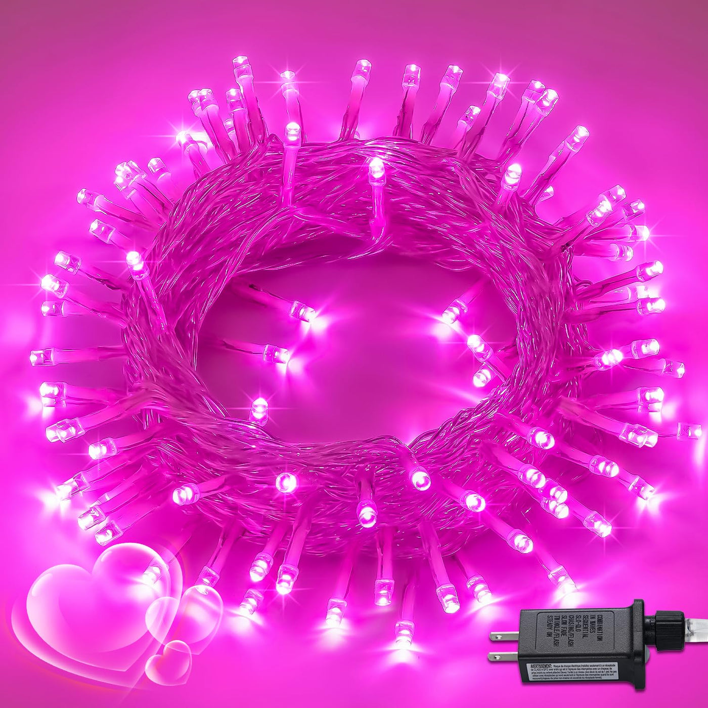 Potive 200 Led Pink String Lights - Add Elegance & Joy To Every Celebration Celebrate Special Occasions With The Potive 200 Led Pink String Lights. This 66Ft Extendable String Features 200 Vibrant Pink Led Lights That Are Perfect For Valentine'S Day, Christmas, Parties, And Cozy Indoor Spaces. Designed With Dynamic Lighting Modes, Waterproof Construction, And Convenient Timer Features, These Lights Make Decorating Simple, Safe, And Fun. ________________________________________ Why Choose Potive 200 Led Pink String Lights? 200 Led Lights With Soft Pink Glow: Featuring 200 Vibrant, Soft Pink Led Lights, These Pink String Lights Provide A Gentle, Inviting Glow That Enhances Any Space. Perfect For Bedrooms, Valentine'S Day Celebrations, Parties, Or Christmas Tree Decorations. Extendable & Adaptable For Every Space: 66Ft Of Clear Wiring Can Easily Be Stretched And Placed Wherever You Want. Perfect For Decorating Porches, Patios, Bedrooms, Christmas Trees, Walls, Or Gardens. ________________________________________ Specifications: Style: 200 Led Pink String Lights Length: 66Ft Led Quantity: 200 Leds Lighting Modes: 8 Modes Waterproof Rating: Ip44 Power Source: Plug-In ________________________________________ Package Includes: 1X 66Ft 200 Led Pink String Lights 1X Ul-Certified Plug-In Adapter