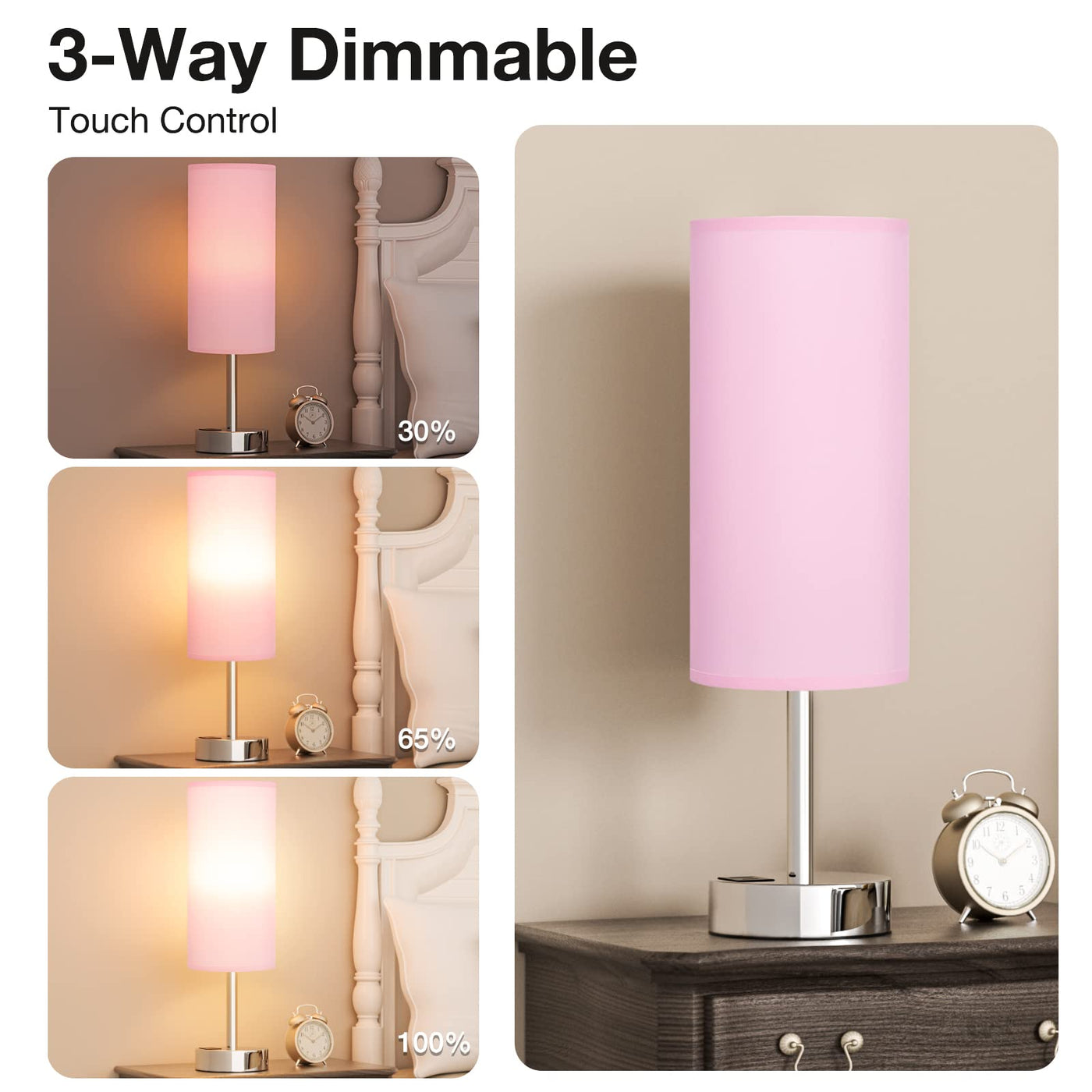 Pink Touch Nightstand Lamps For Girl - Small Desk Bedside Lamp With Usb-C And Usb Charging Ports, 3 Way Dimmable Control Table L