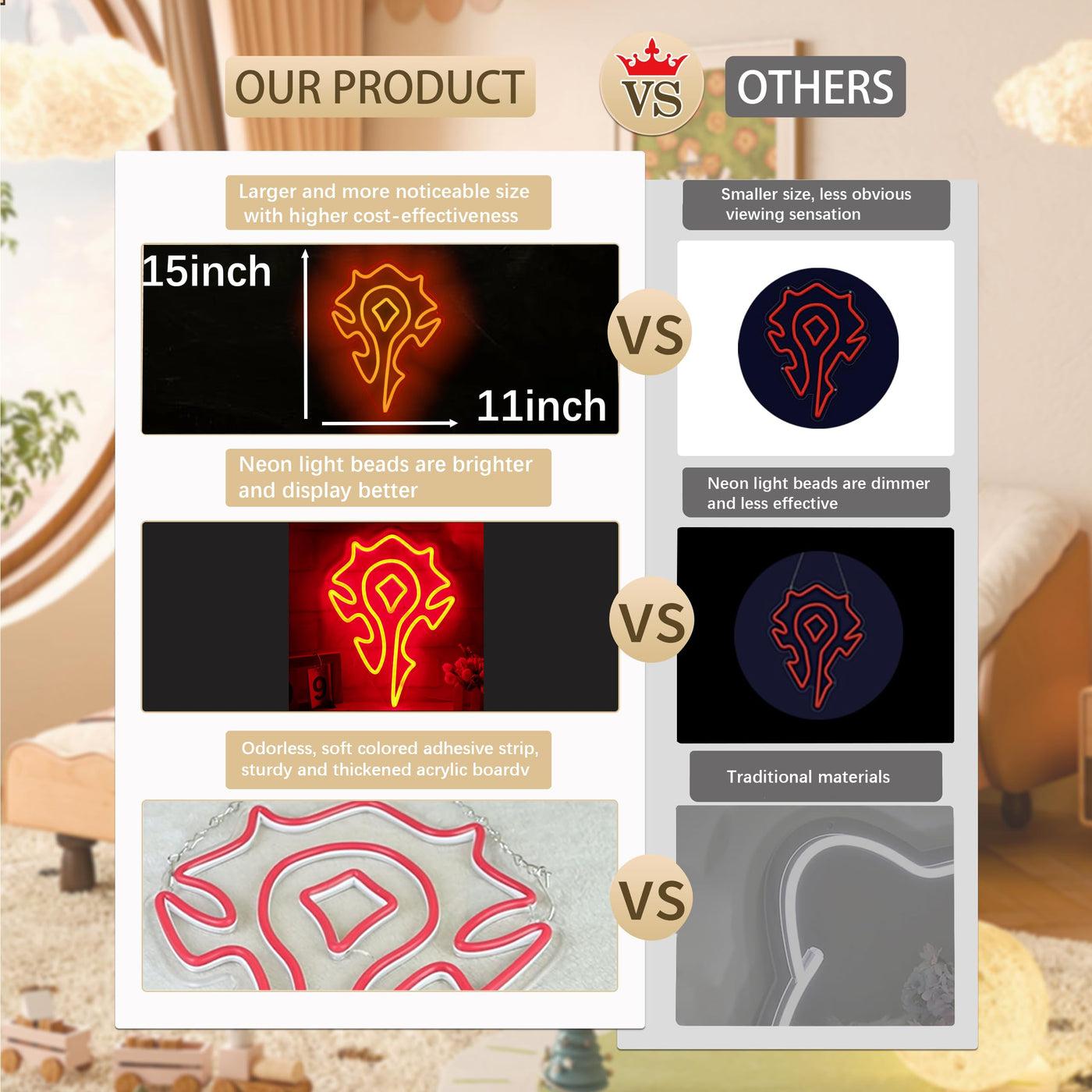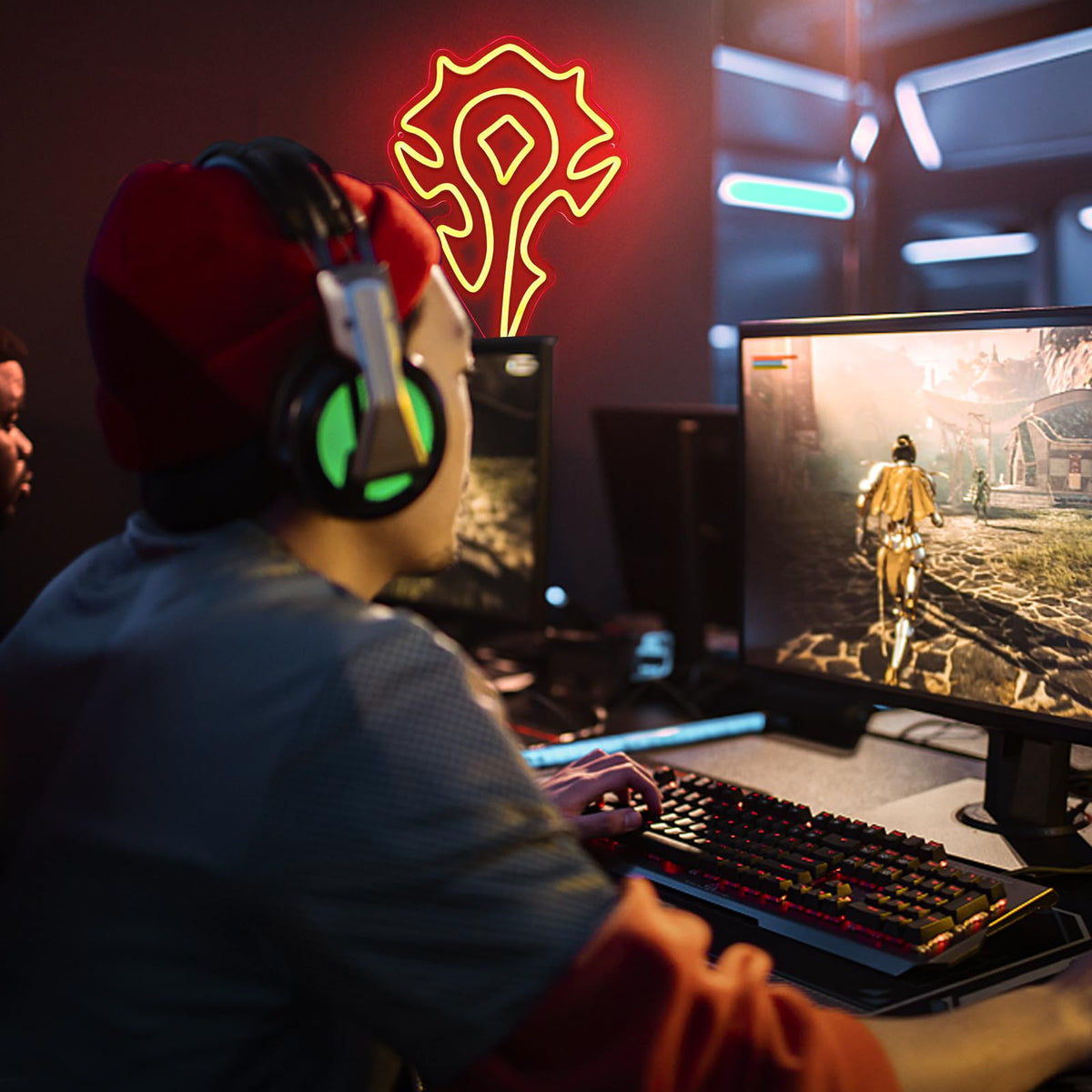 Pinlangdou Red-Horde Neon Sign World of War Craft Themed Neon Lights Light Up Your Game Fantasy World for Wall Decor Kids Room B