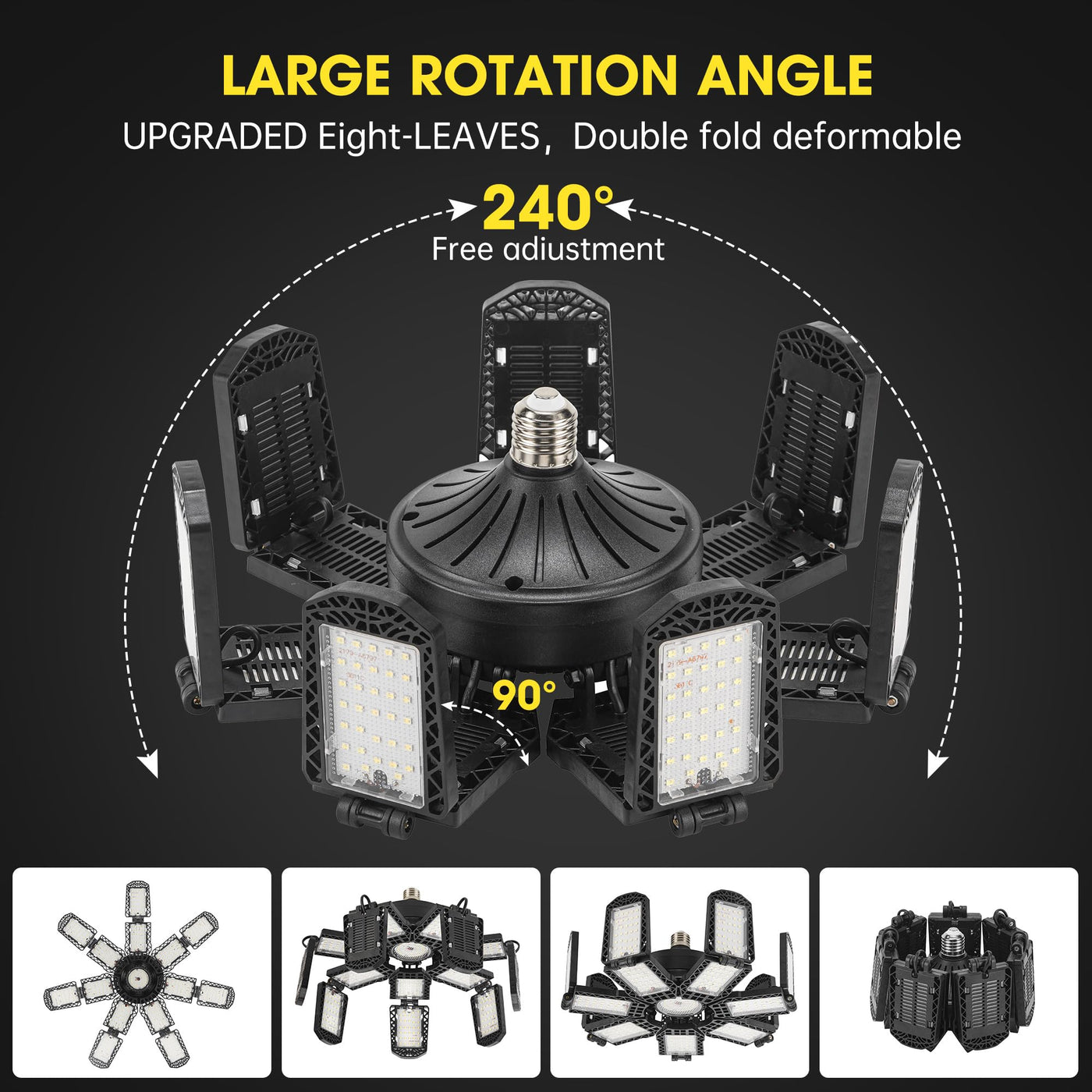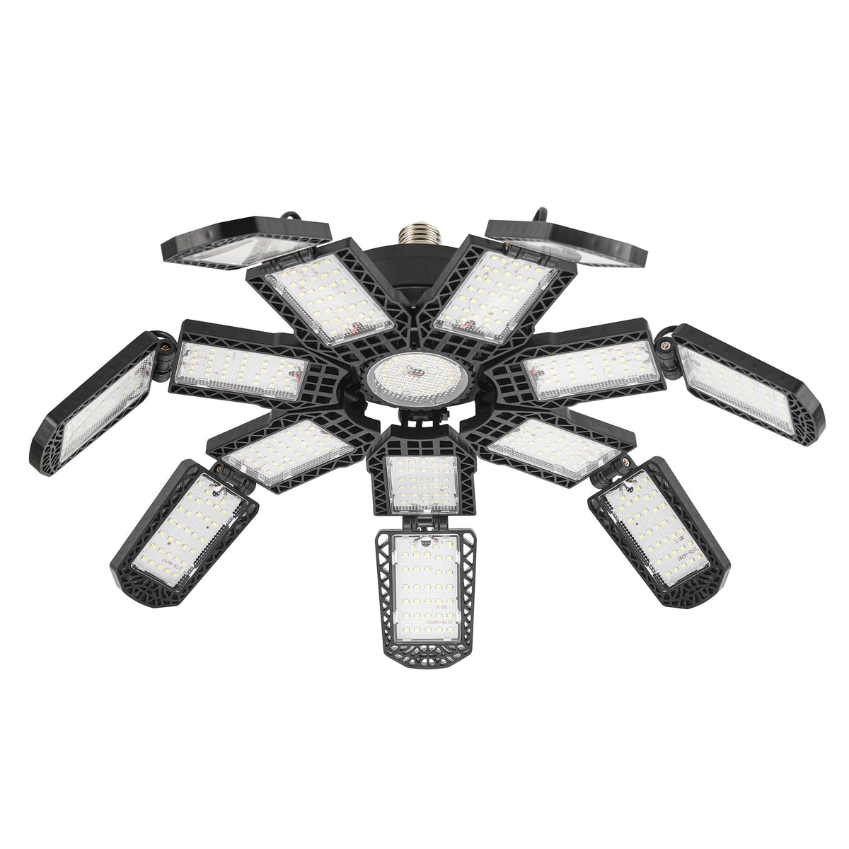 Q: What are the benefits of using the PINSAI LED Garage Light compared to traditional garage lighting?A: The PINSAI LED Garage Light offers significant benefits over traditional lighting, including 30000 lumens of brightness, energy savings of up to 85%, and adjustable panels for customizable lighting angles. Its deformable design minimizes shadows and enhances visibility, making it ideal for work and maintenance tasks.