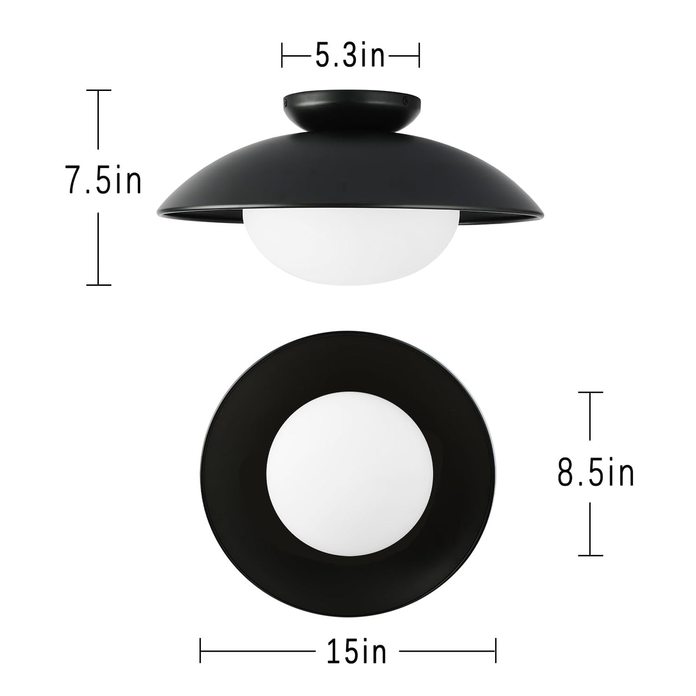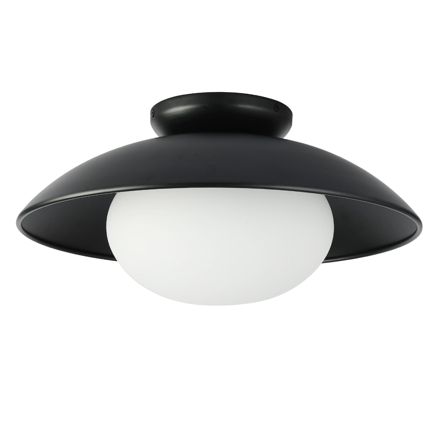Pirxxiy Soft Black 15In Semi Flush Mount Ceiling Light Fixture, Bowl Lampshade Style Vintage Close To Ceiling Light Fixture, Mod