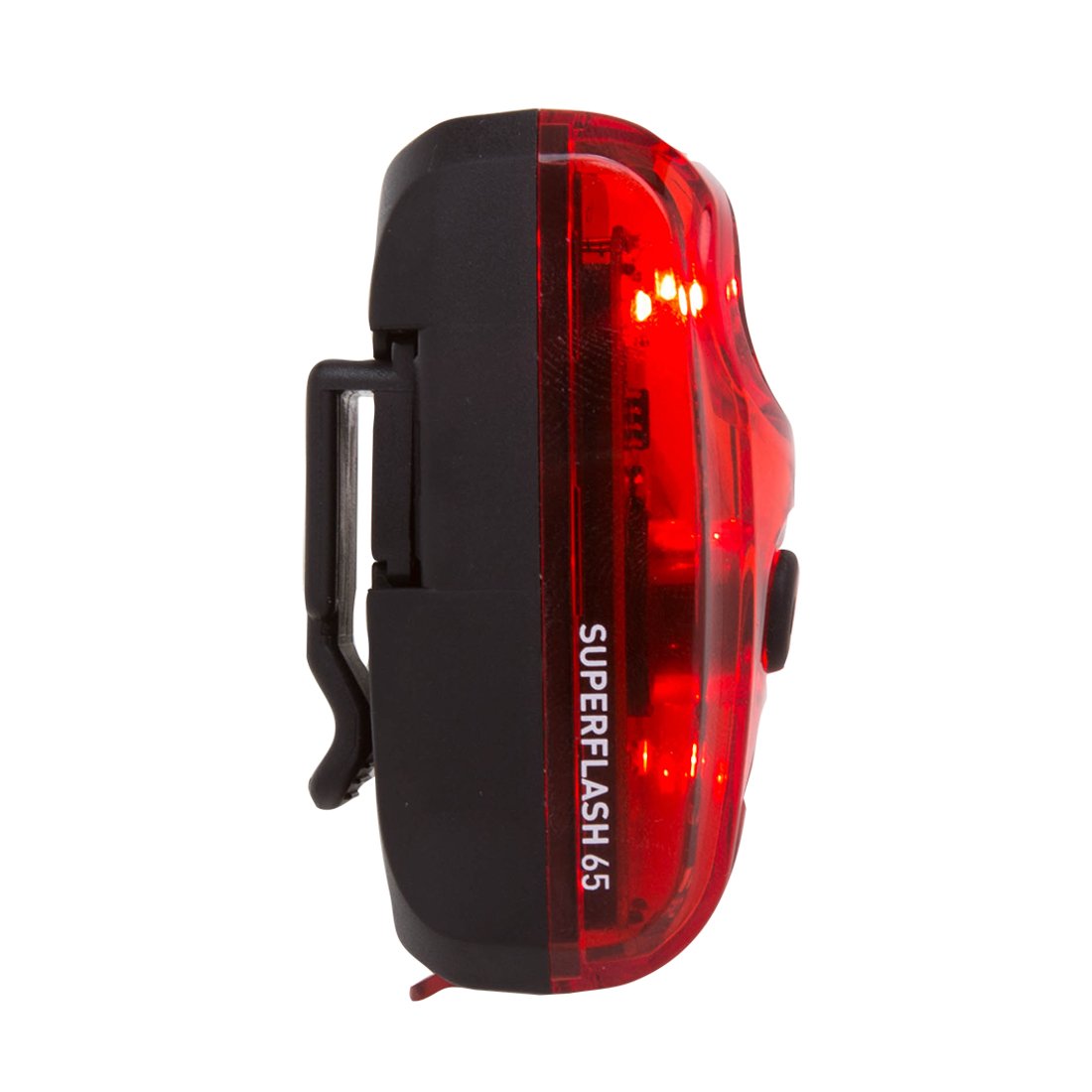 Q: What type of batteries does the Superflash 65 use?A: The Superflash 65 is powered by two AAA batteries, providing a reliable and easy-to-replace power source for your bike light.