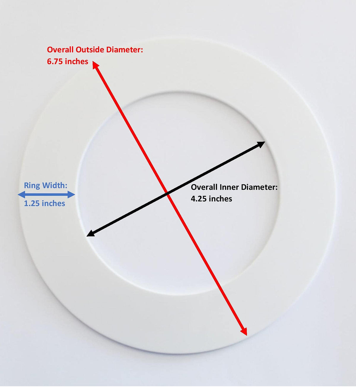 Q: What materials are used in the construction of this trim ring?A: This trim ring is made from high-quality durable plastic, which ensures longevity and stability. It is designed to cover unsightly drywall gaps and is made in the USA.