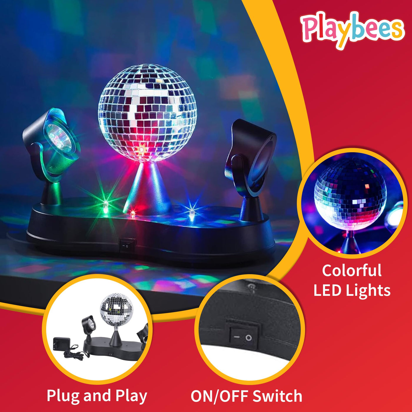 Get ready to unleash the party animal within with the Playbees Rotating Disco Ball! This mini disco ball packs a punch, transforming any room into a vibrant and energetic dance floor. Simply plug it in and watch the magic unfold as colorful lights and groovy vibes fill the air. The Playbees Rotating Disco Ball is more than just a party accessory. It's also a mesmerizing light show and a fun alternative to a traditional lava lamp. With its rotating light and movable strobe effects, it creates a captivating display that's perfect for adding a touch of excitement to any space. Need a quick pick-me-up? Blast on the Playbees Rotating Disco Ball for a 30-second dance party! Whether you're alone or with friends, this mini disco ball guarantees to bring a smile to your face and get your groove on. Crafted with safety and fun in mind, the Playbees Rotating Disco Ball is made with high-quality materials and LED lights. It's compact and portable, so you can take the party anywhere. So why wait? Unleash the fun and light up your life with the Playbees Rotating Disco Ball! Order yours today and get ready to experience a disco party in a box! ?