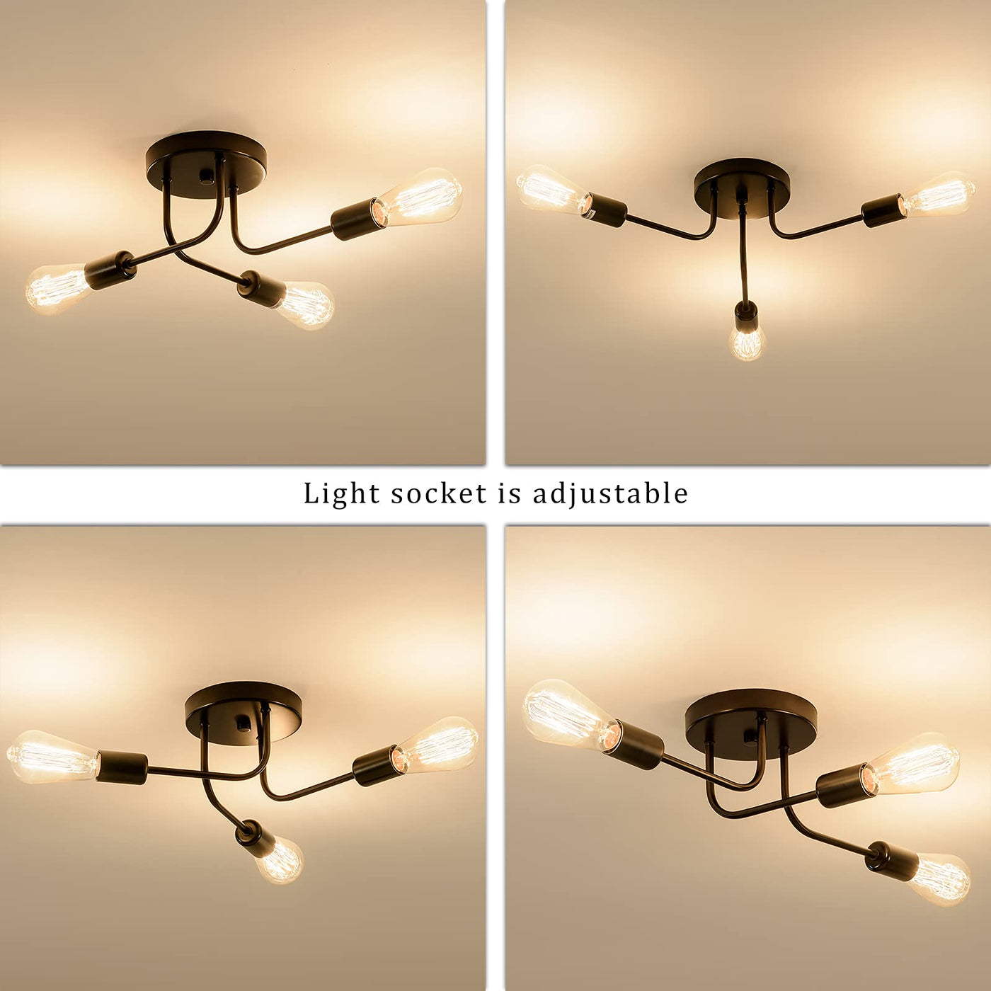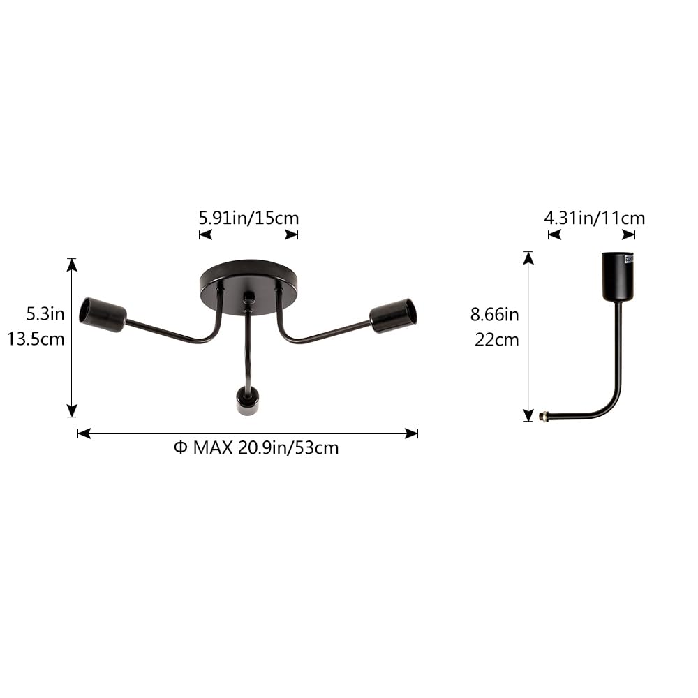 Plfann Industrial Semi Flush Mount Ceiling 3 Light With Adjustable Metal Branched Vintage Ceiling Light E26 Holder Black Painted
