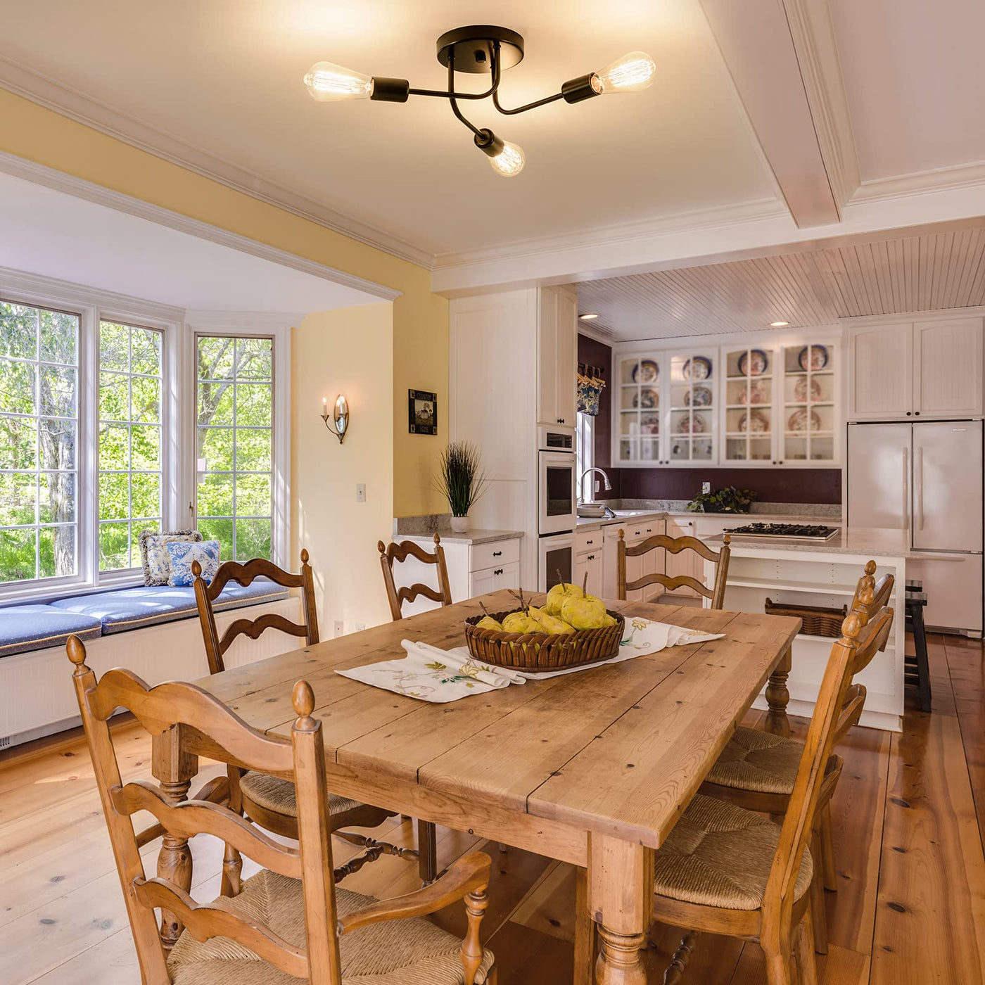 Q: Where can I use the Plfann Industrial Semi Flush Mount Ceiling Light?A: This vintage ceiling light is versatile and can be used in various spaces, including kitchens, bedrooms, foyers, hallways, stairways, and offices, enhancing the ambiance of any room.