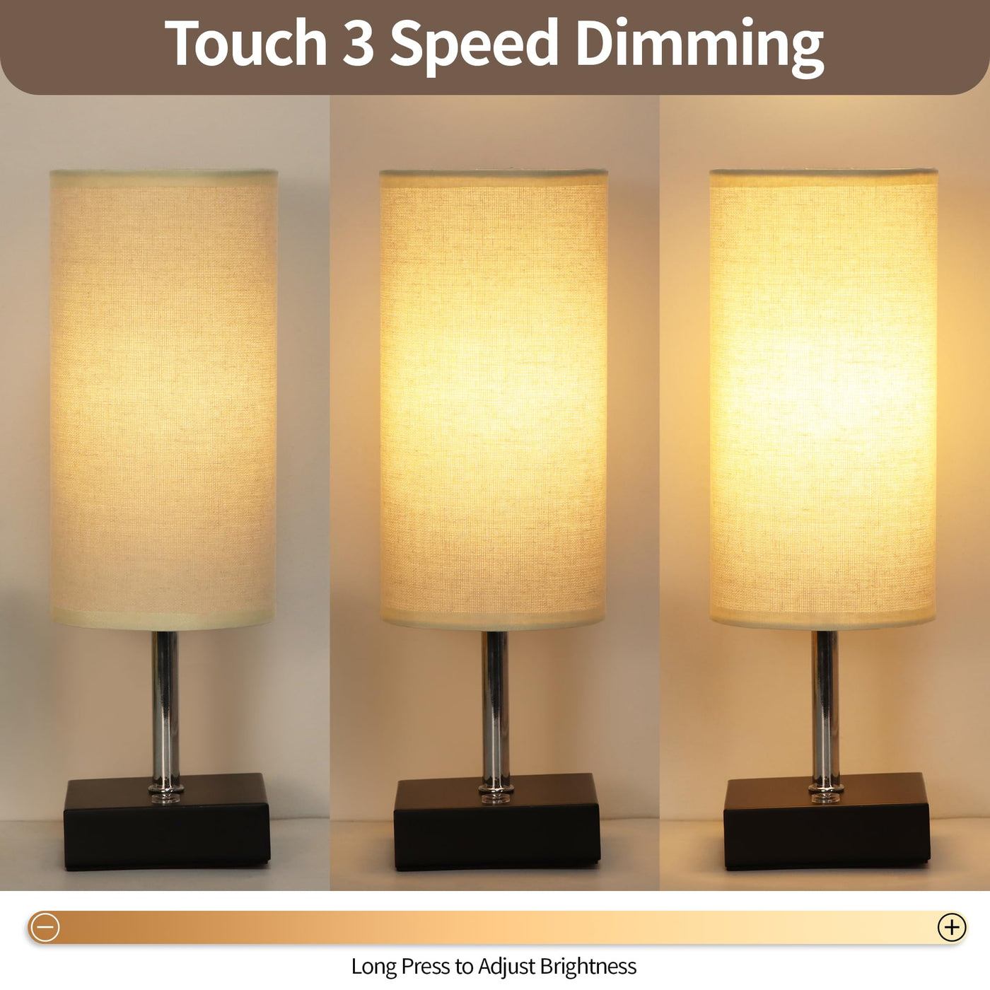 Q: What are the brightness levels available on this lamp?A: This lamp offers three different brightness levels: Low, Medium, and High, which you can easily control with touch buttons located on the lamp base.