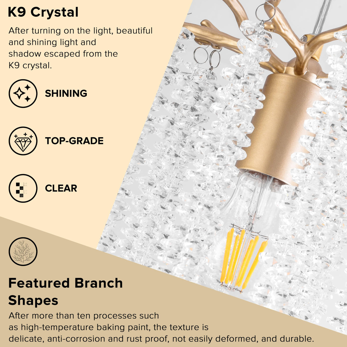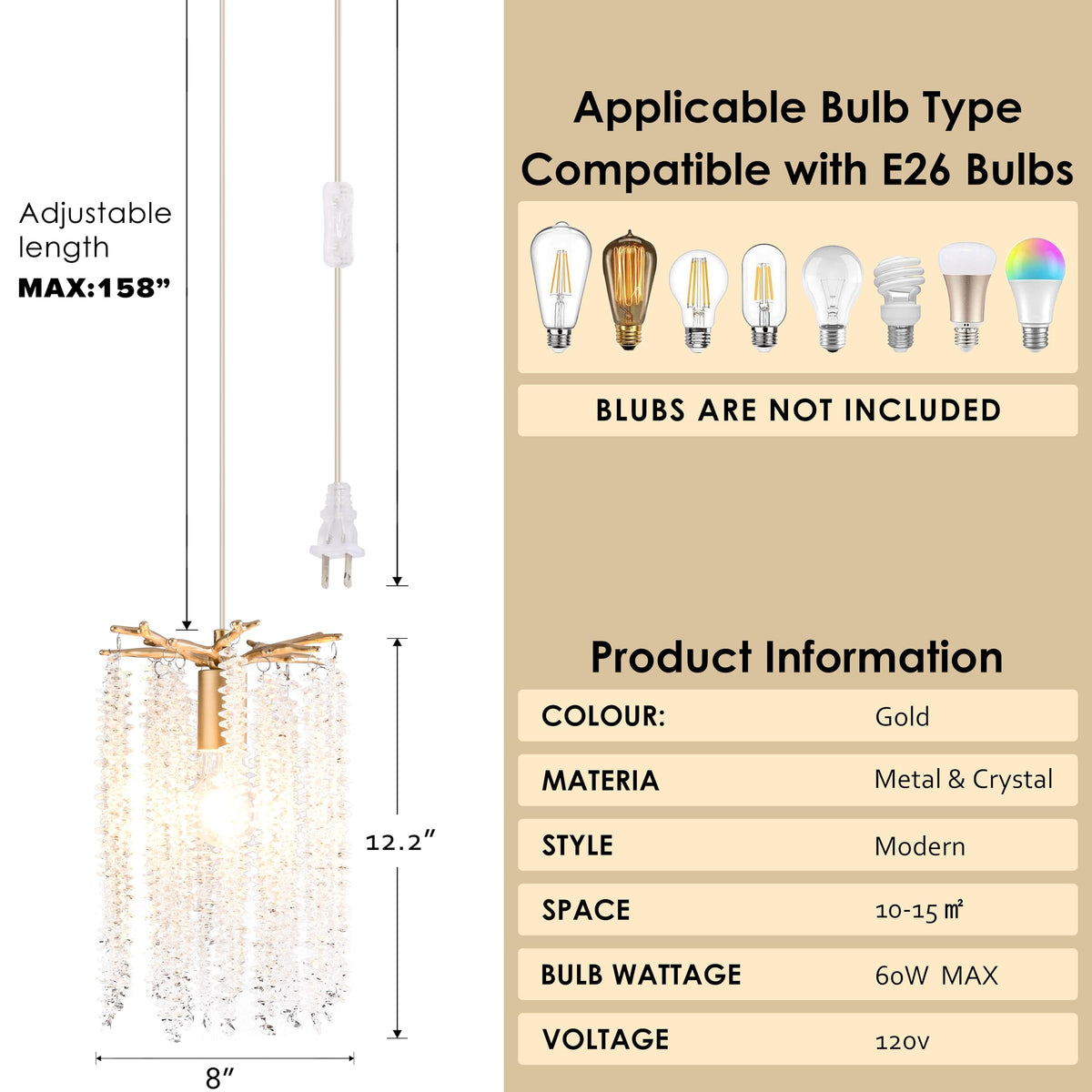 Plug In Crystal Chandelier With 15Ft Cord Modern Pendant Light For Bedroom Mini Antler Hanging Lamp For Kitchen Island Dinning B