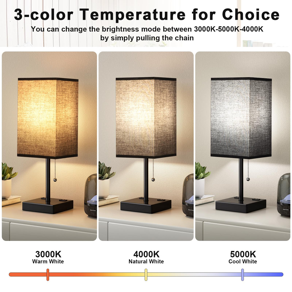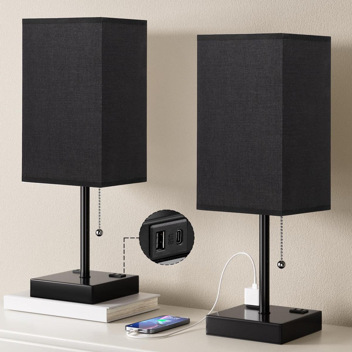Plus Black Bedside Table Lamps Set Of 2 - Bedroom Lamps With 3 Colors (3000K/5000K/4000K), Square Nightstand Lamp With Usb C + A
