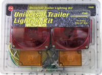 Provides all legal lighting and reflective equipment for any trailer less than 80 in W. Combination lights, of tough molded housing and lenses with phosphor bronze contacts for durability, exceed DOT requirements for stop, turn, tail, rear and side reflector, side marker and license illuminator. Side marker light has built-in reflector optics. Includes No.440 stop and tail combination lights, 2 No.114A side marker lights, 20 ft wire harness, 48 in trunk connector, license bracket, all mounting hardware and installation instructions.
