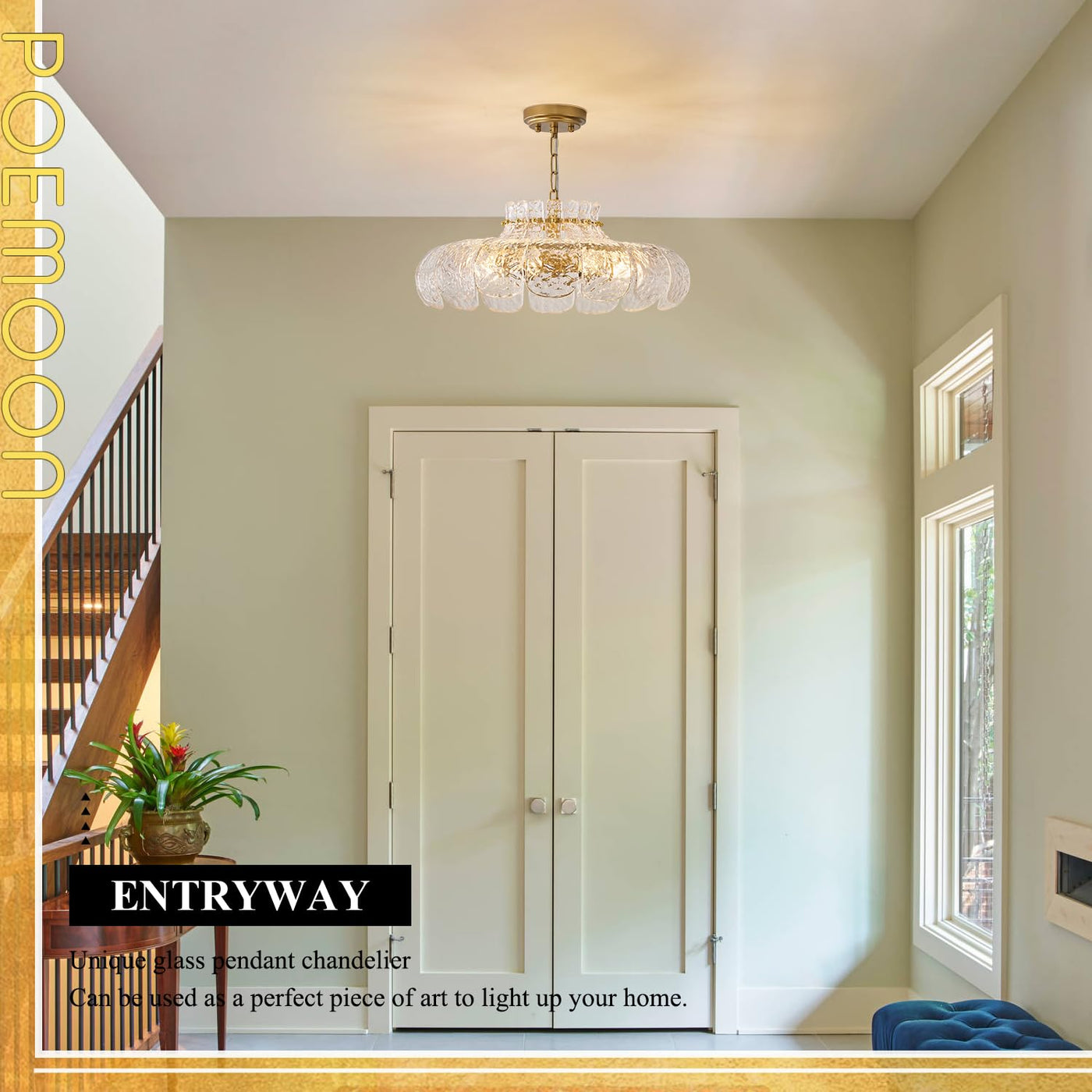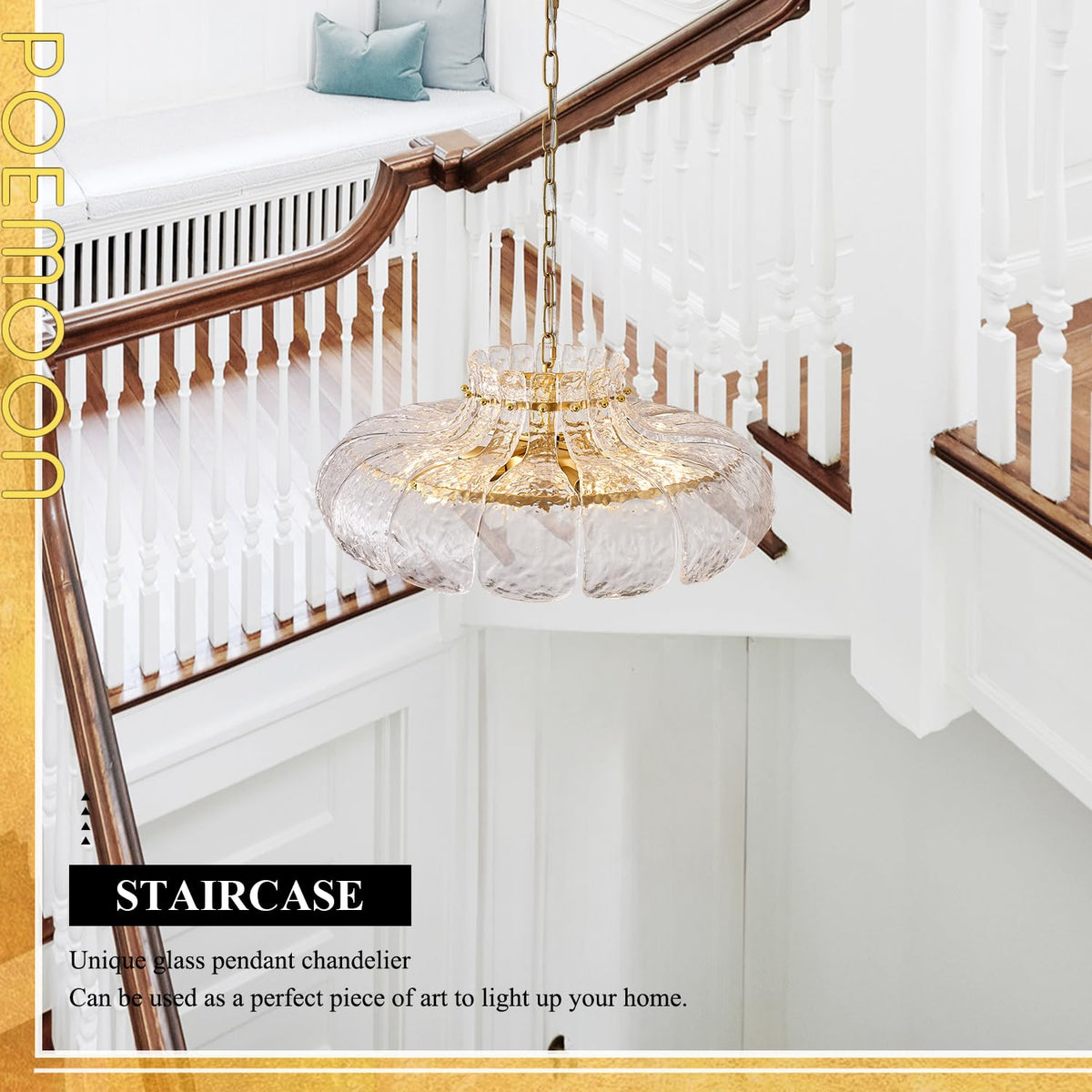 Poemoon 8-Light Modern Water Ripple Glass Chandelier 21.6'' Pendant Chandelier Luxury Gold Hanging Lighting for Living Dining Room,Kitchen,Foyer,Entryway,Bedroom,E12 Base