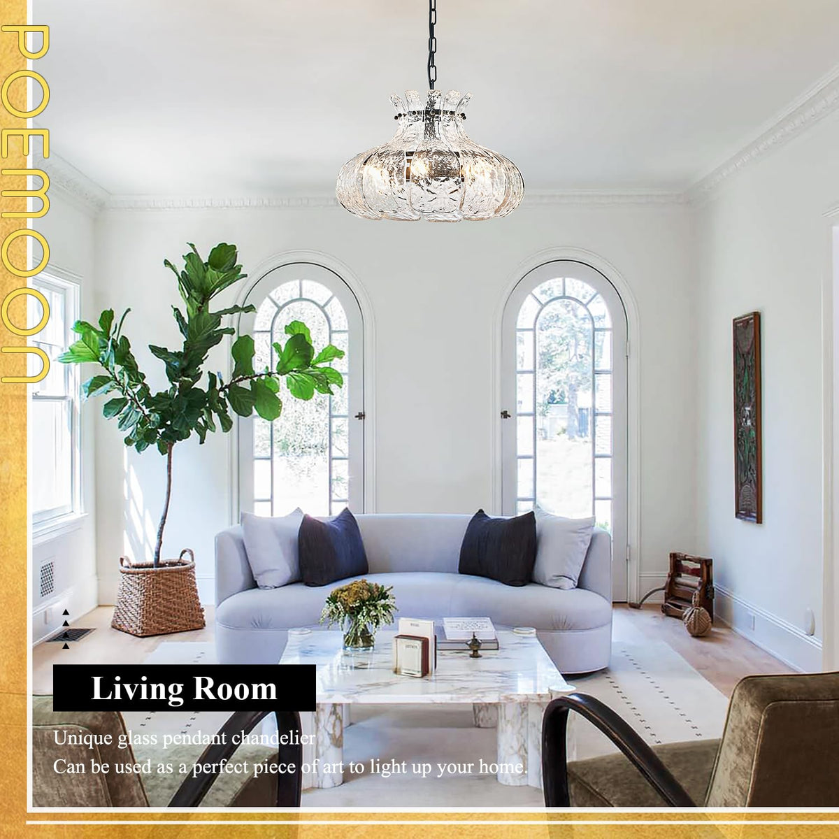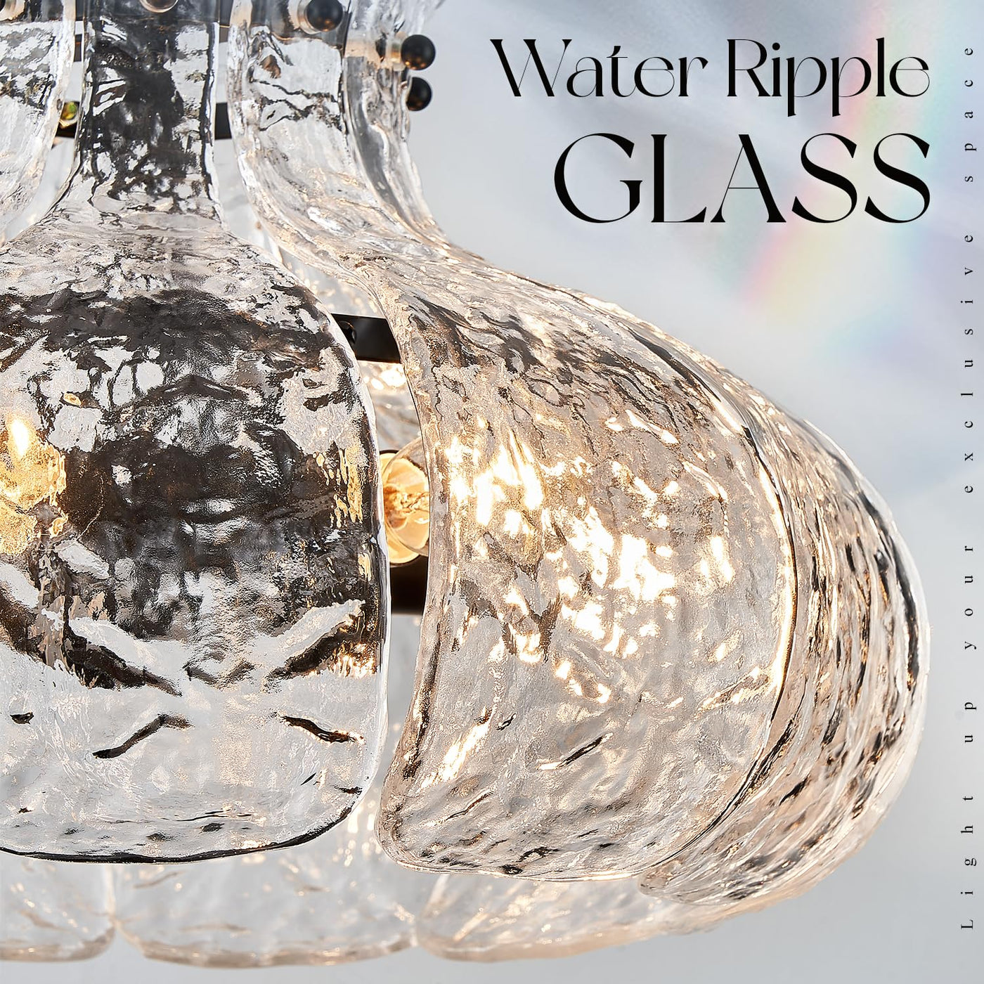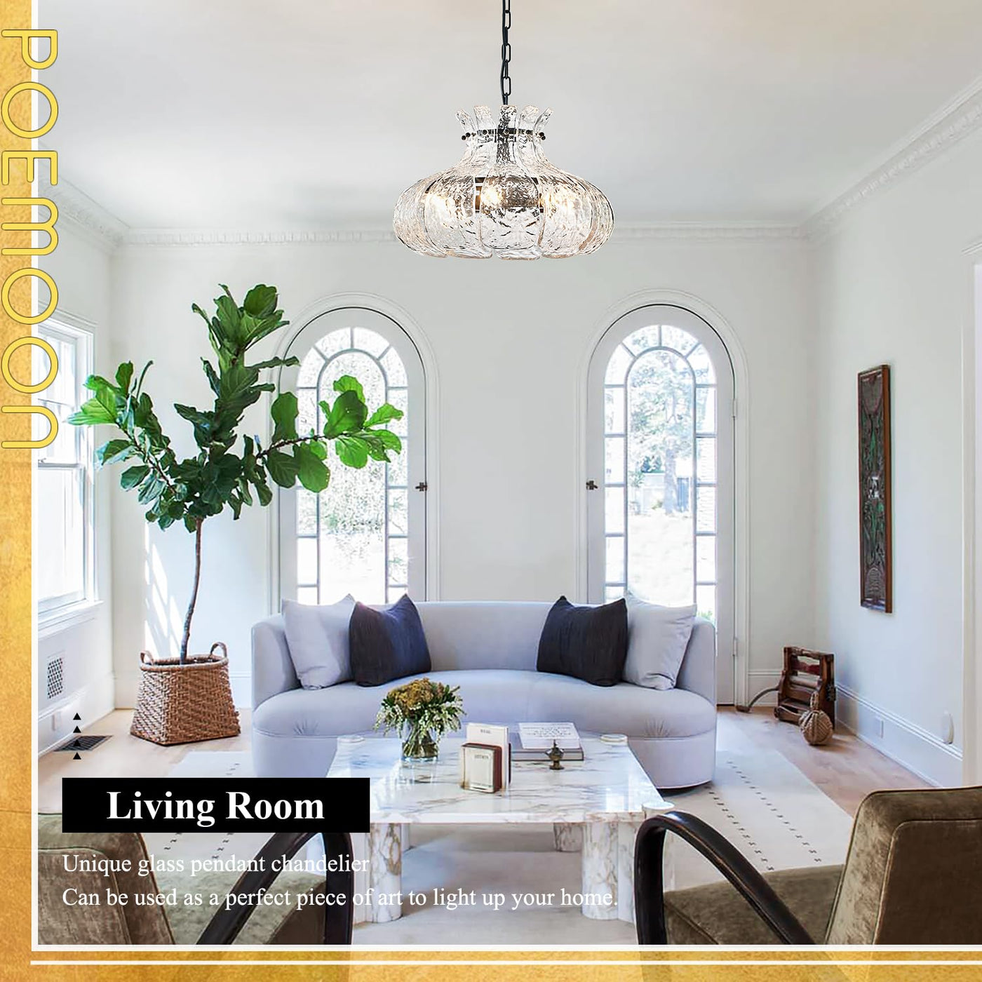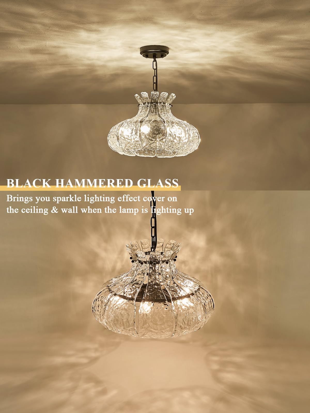 Poemoon Black Glass Chandelier 6-Light Water Ripple Glass Pendant Lighting Luxury 15.7'' Hanging Light Fixture for Dining Room,Kitchen Island,Entryway,Hallway,Bedroom,E12 Base