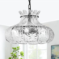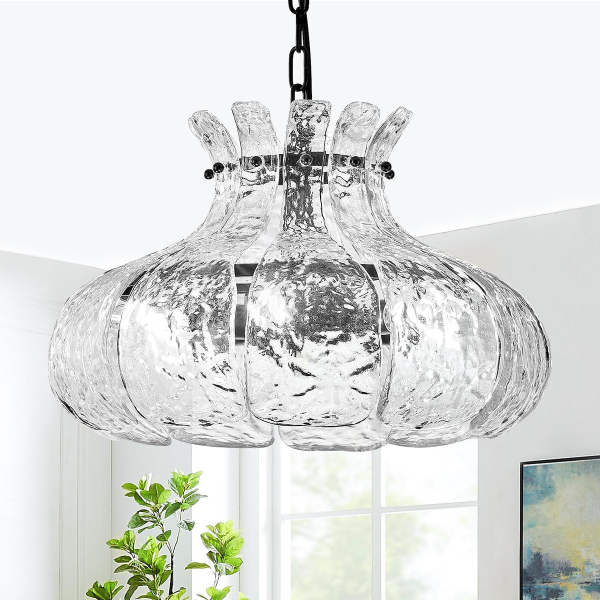 Poemoon Black Glass Chandelier 6-Light Water Ripple Glass Pendant Lighting Luxury 15.7'' Hanging Light Fixture For Dining Room,K
